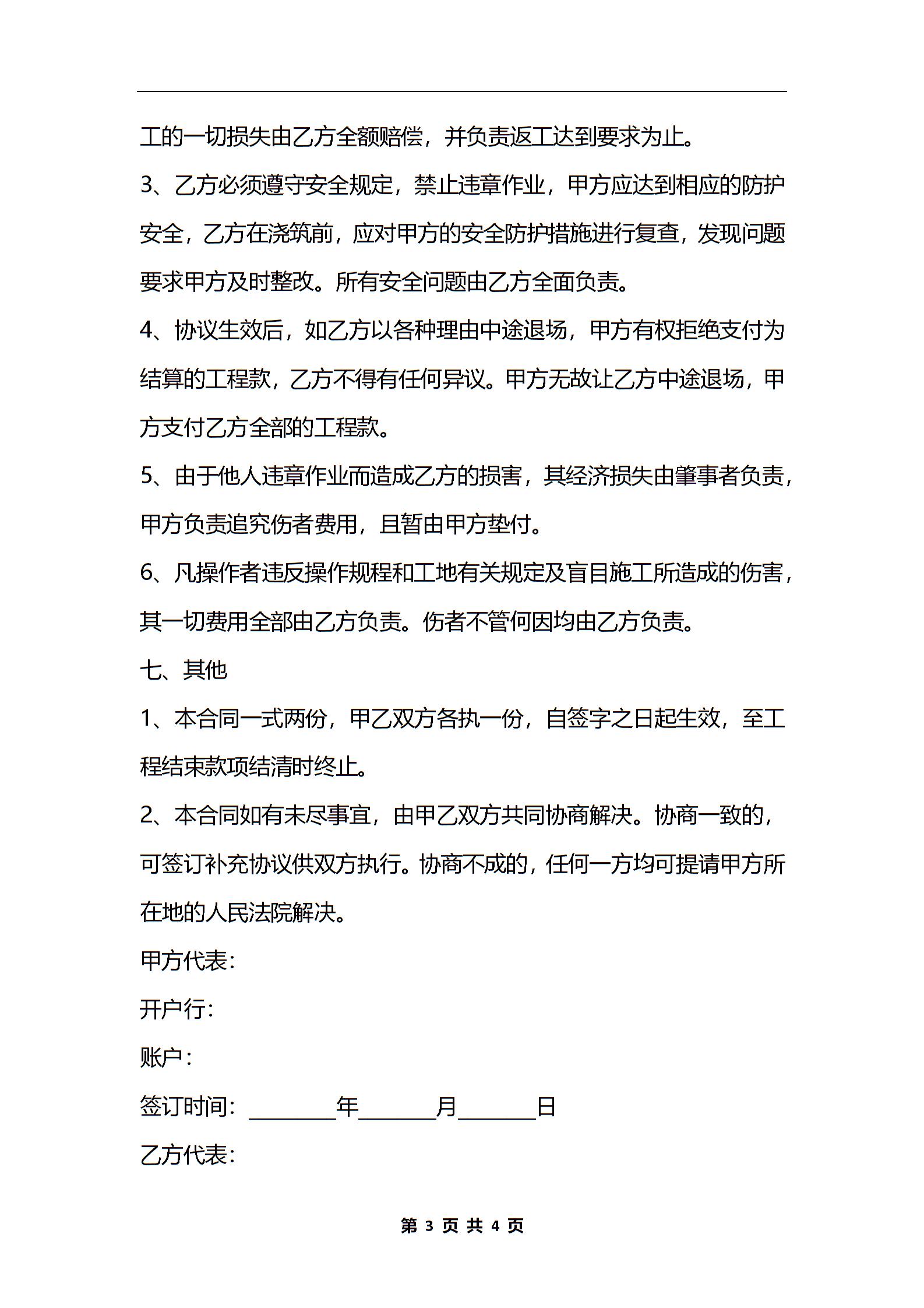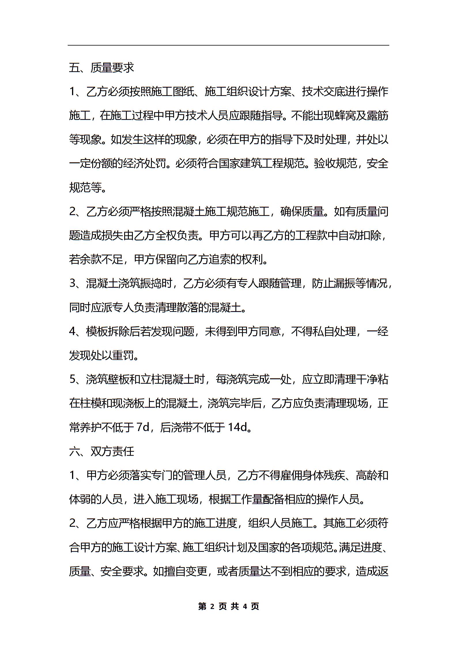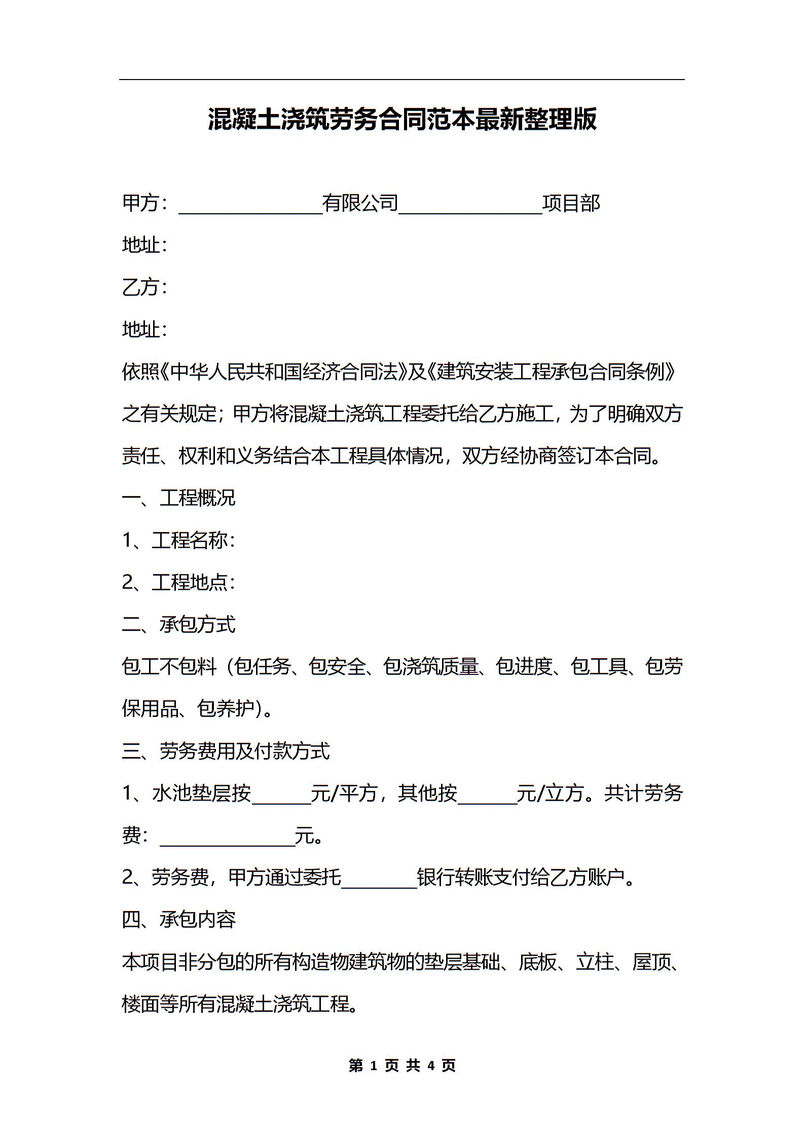 混凝土浇筑劳务合同范本最新整理版