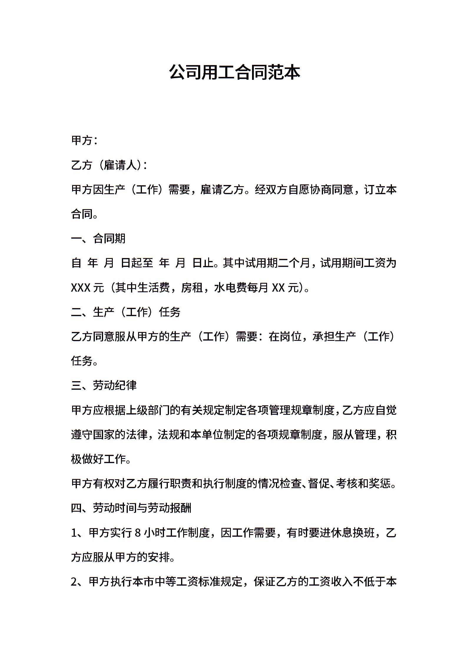 公司用工合同范本