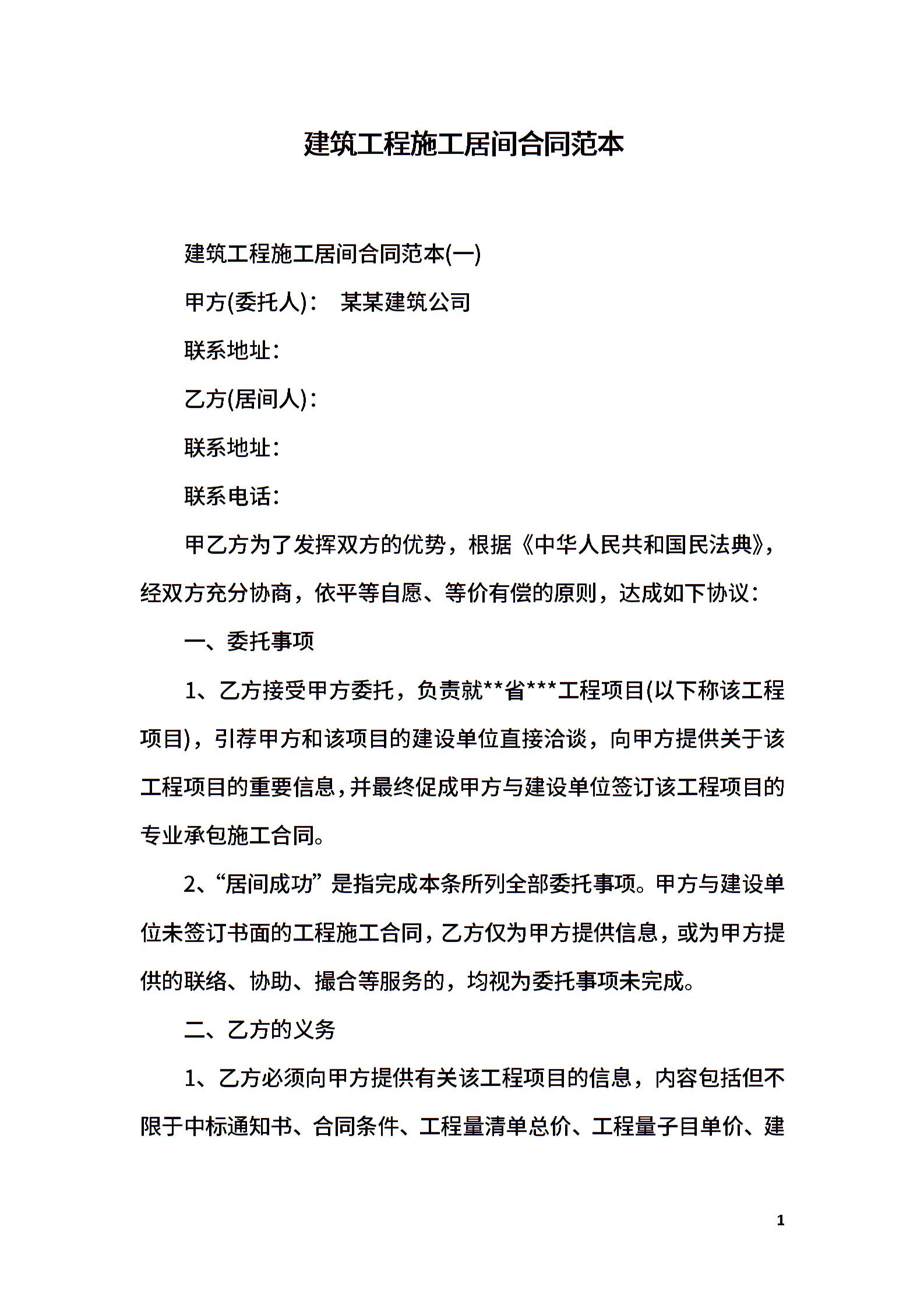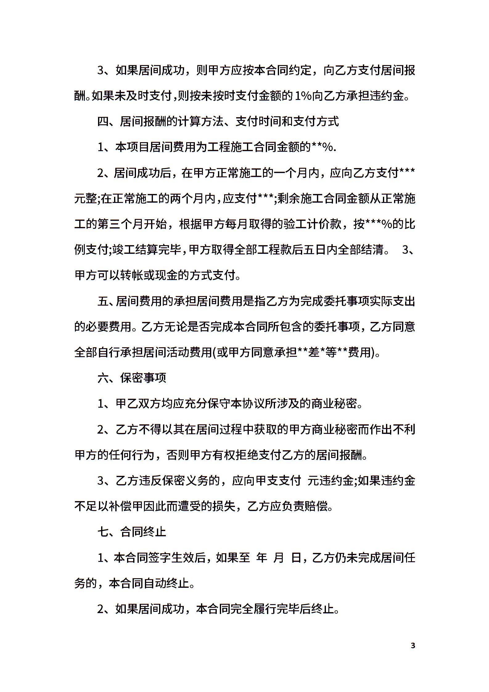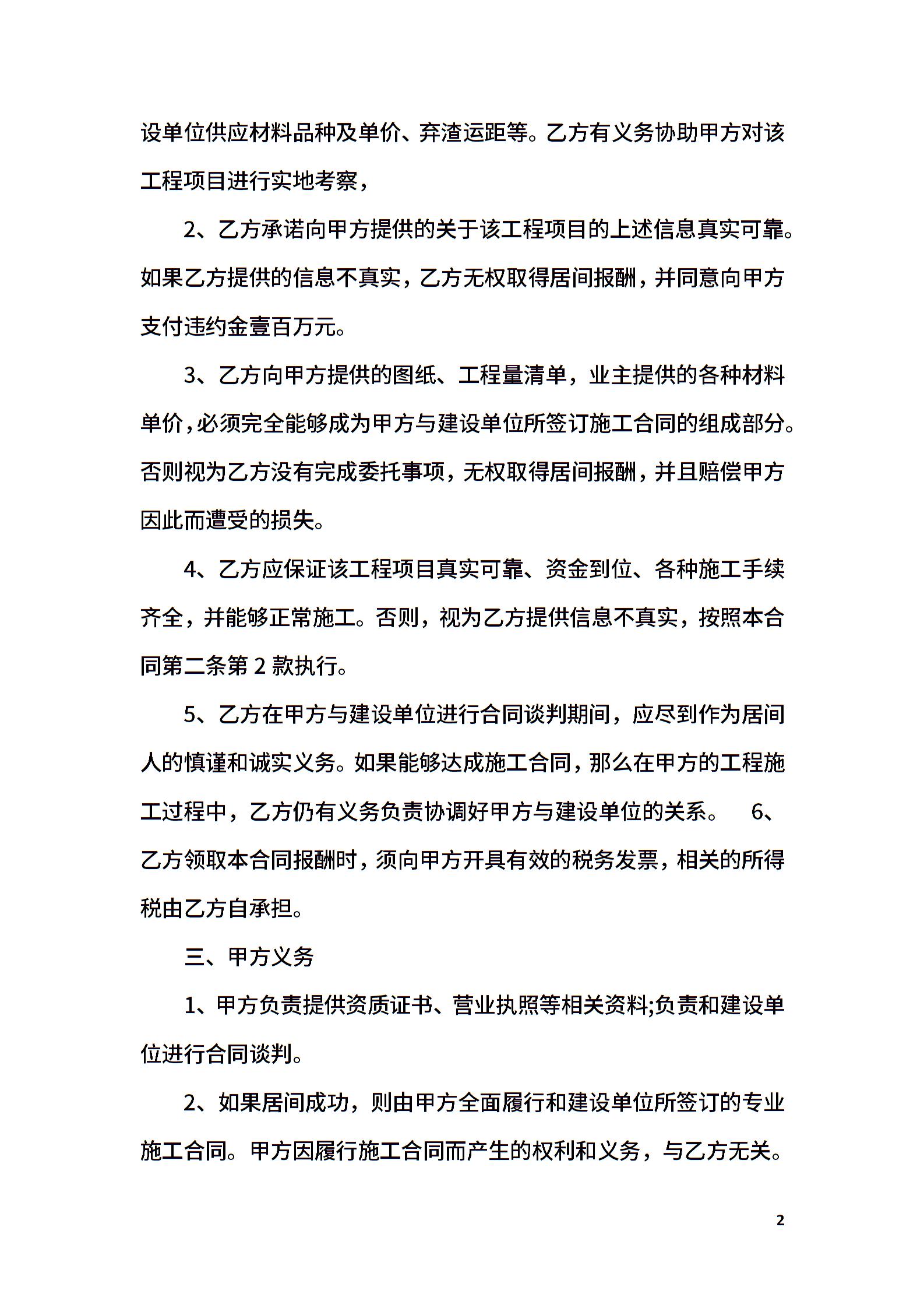 建筑工程施工居间合同范本,工程施工居间合同范本