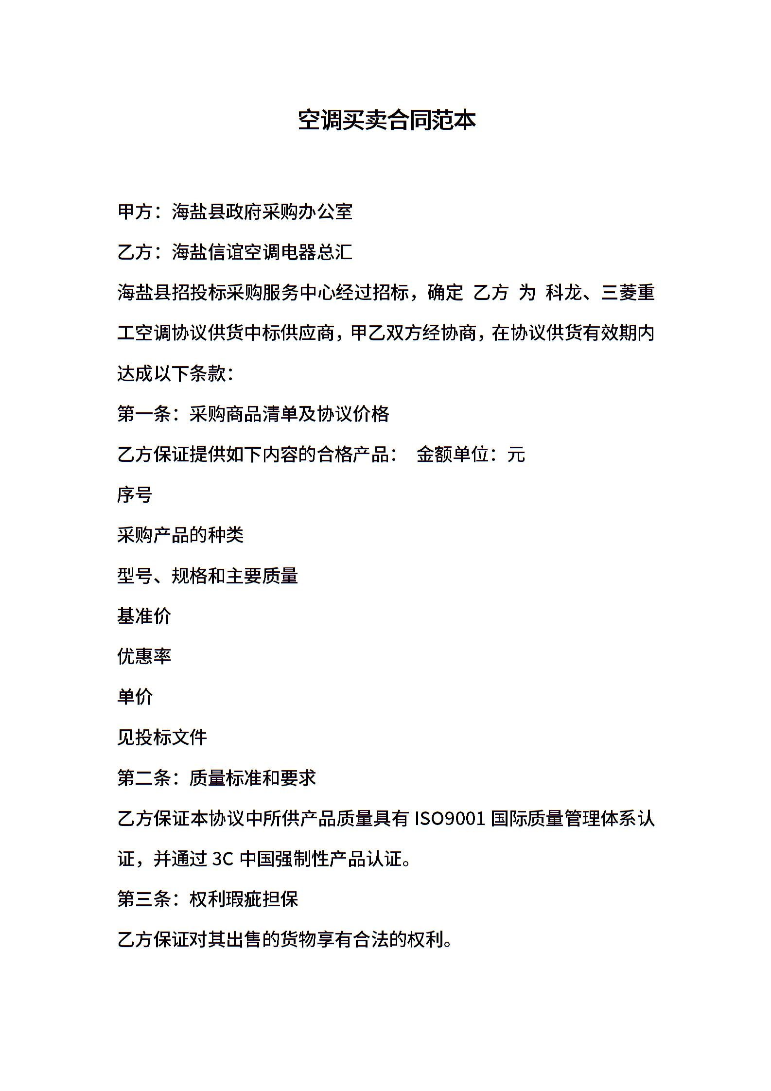 空调买卖合同范本