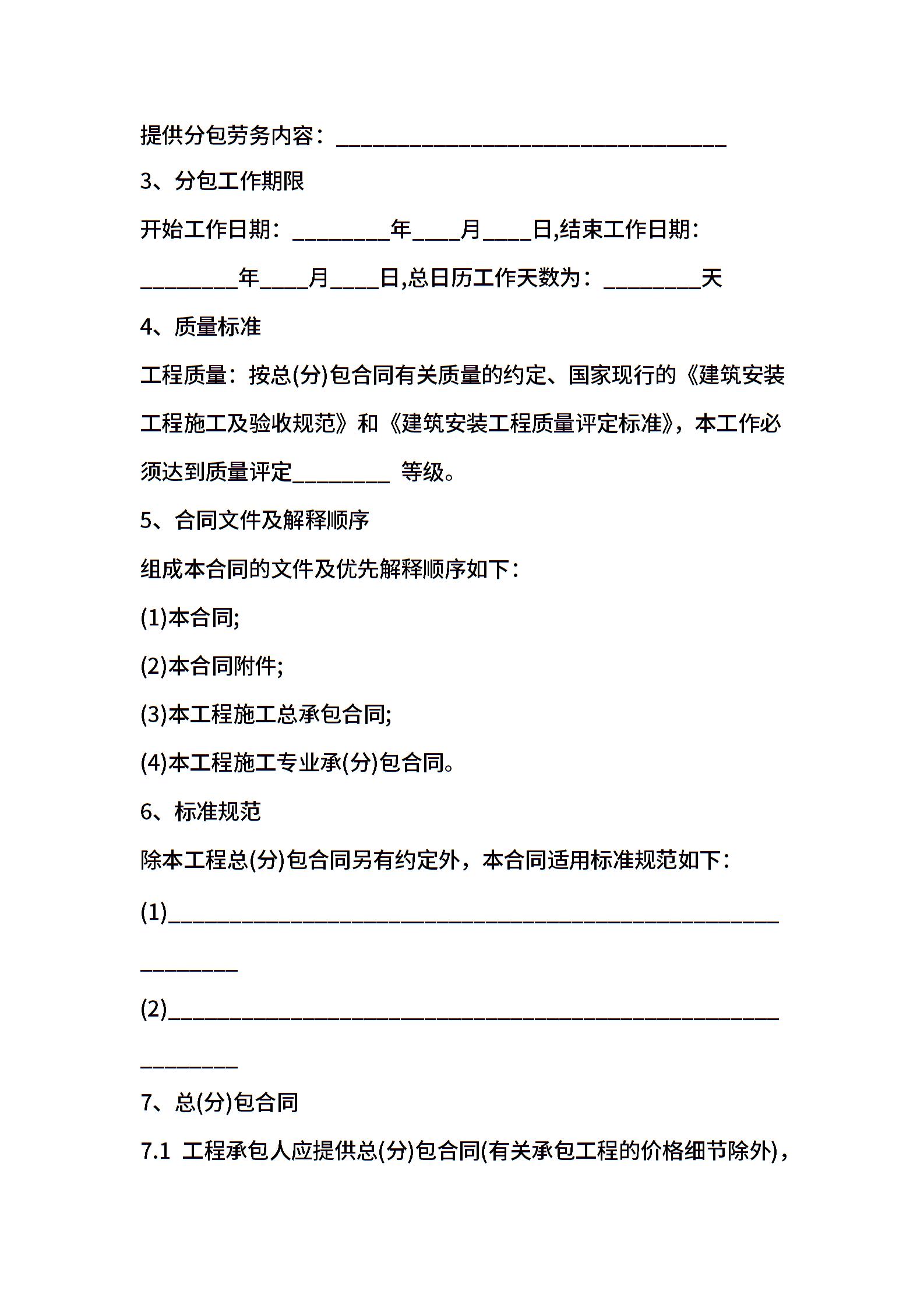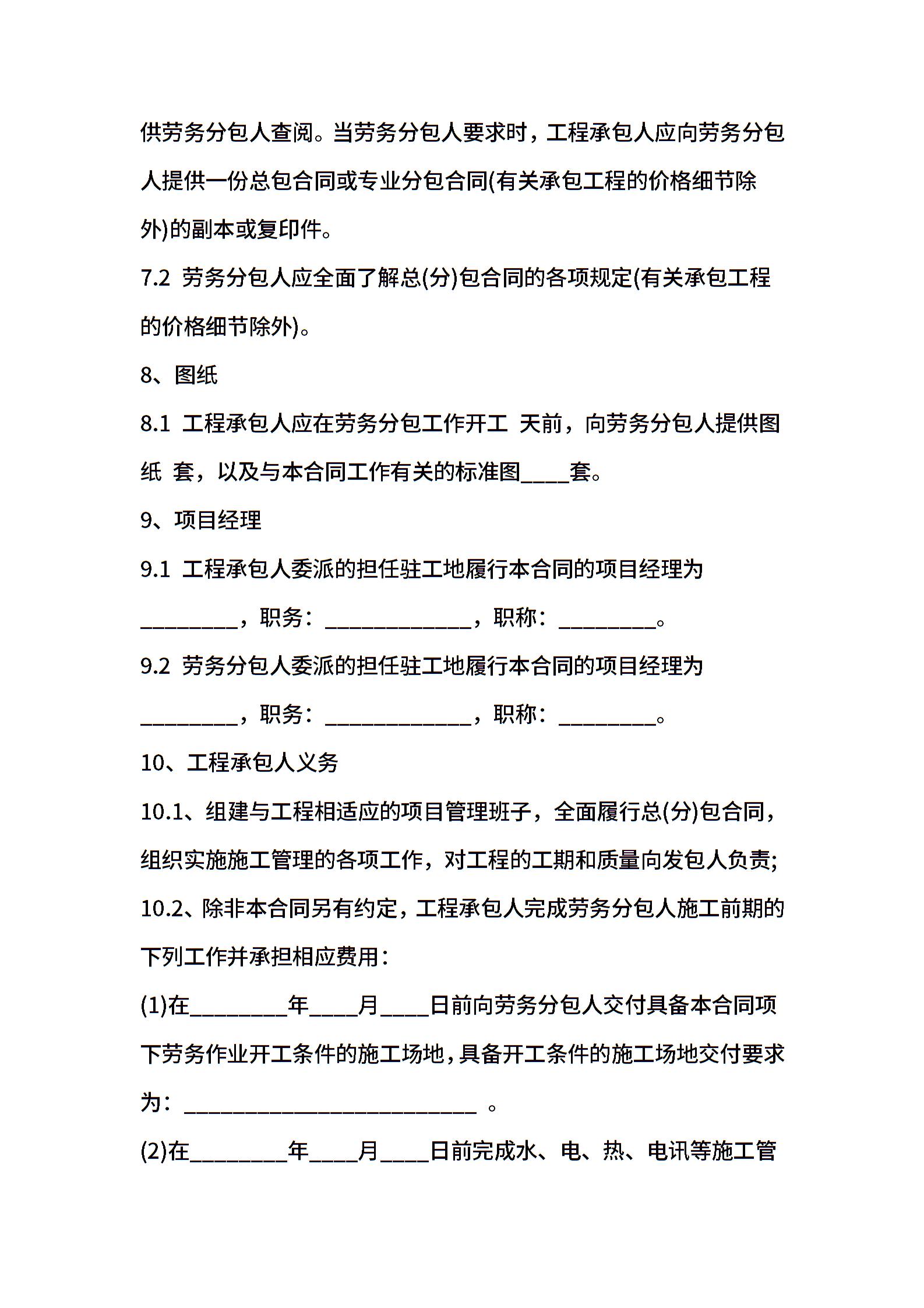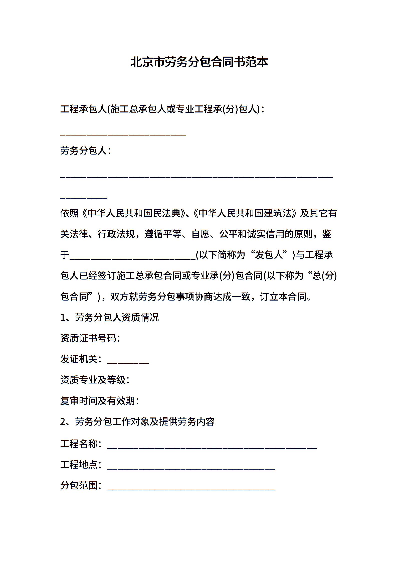 北京市劳务分包合同书范本