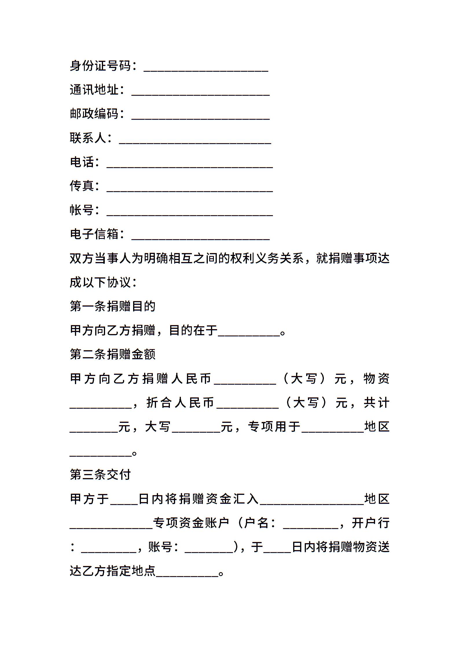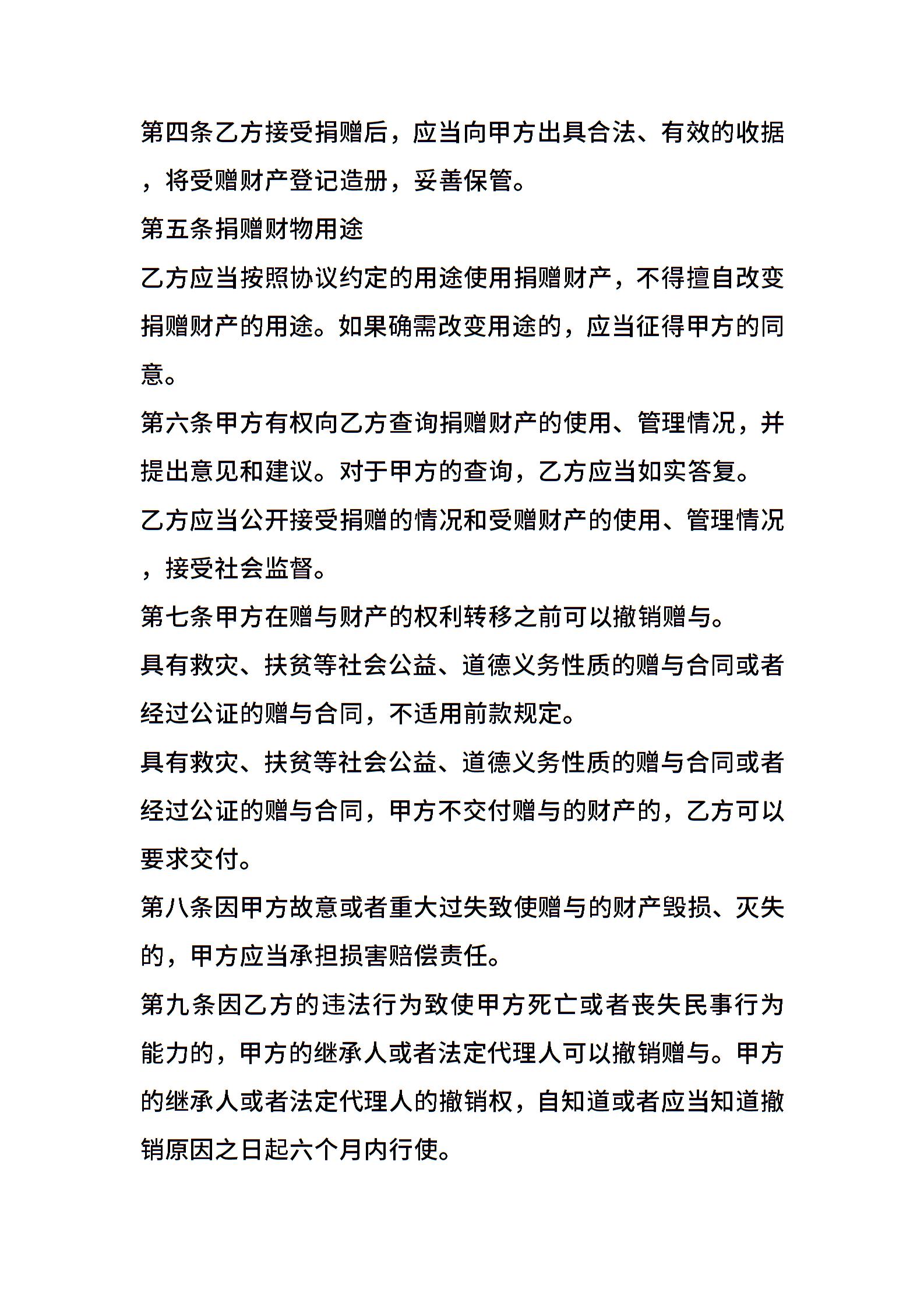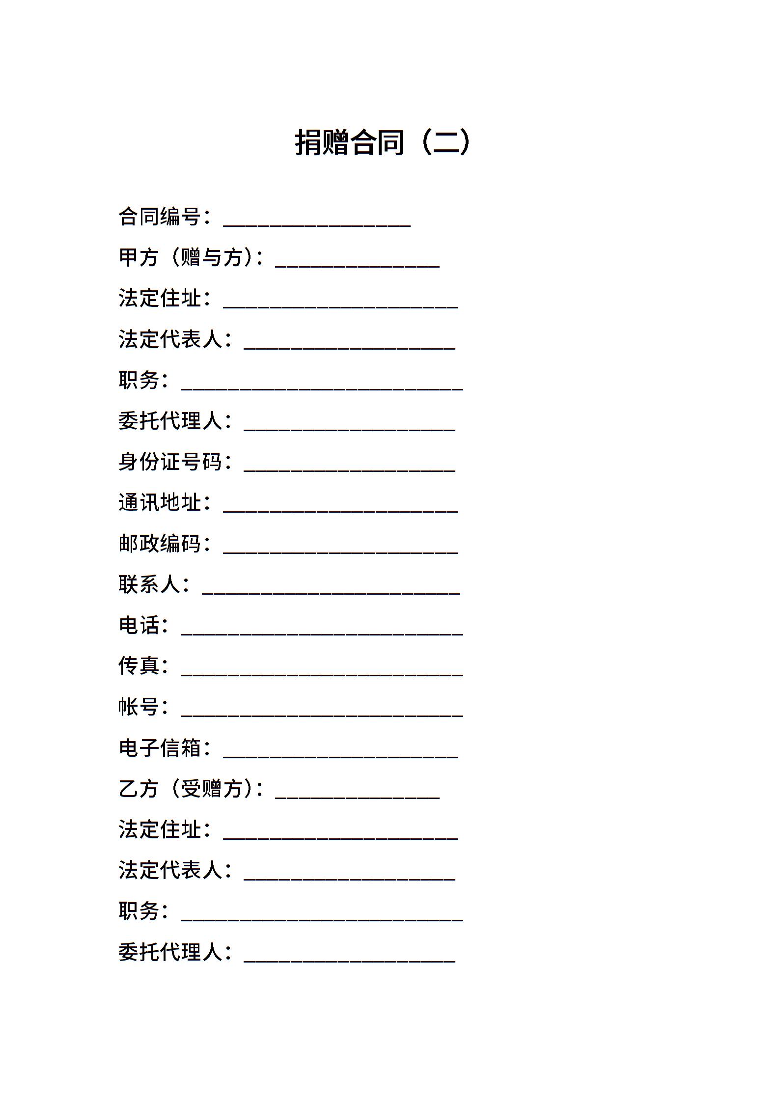 捐赠合同(二)