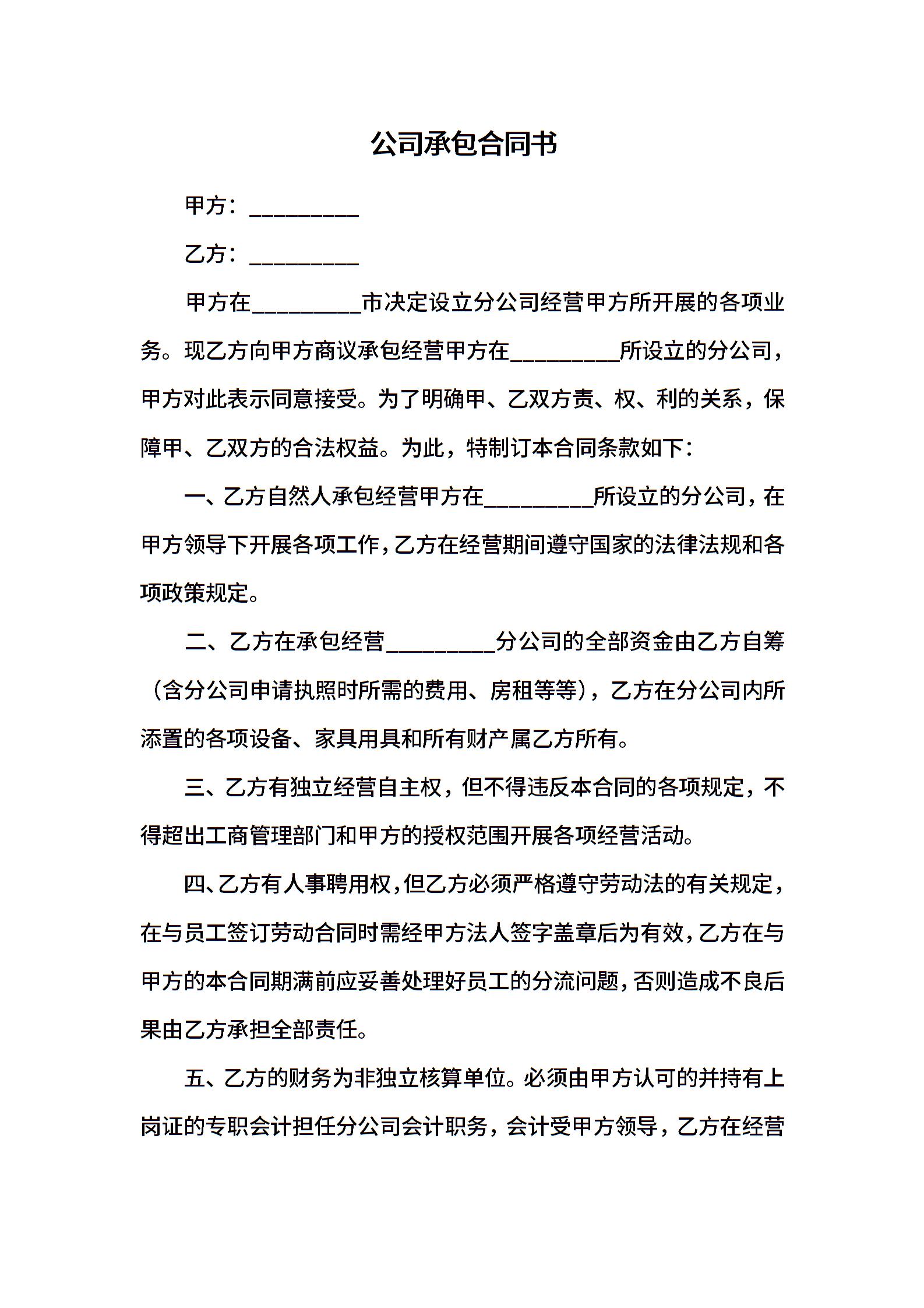 公司承包合同书