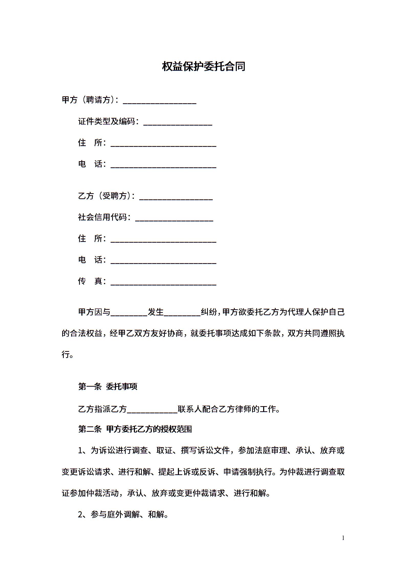 权益保护委托合同