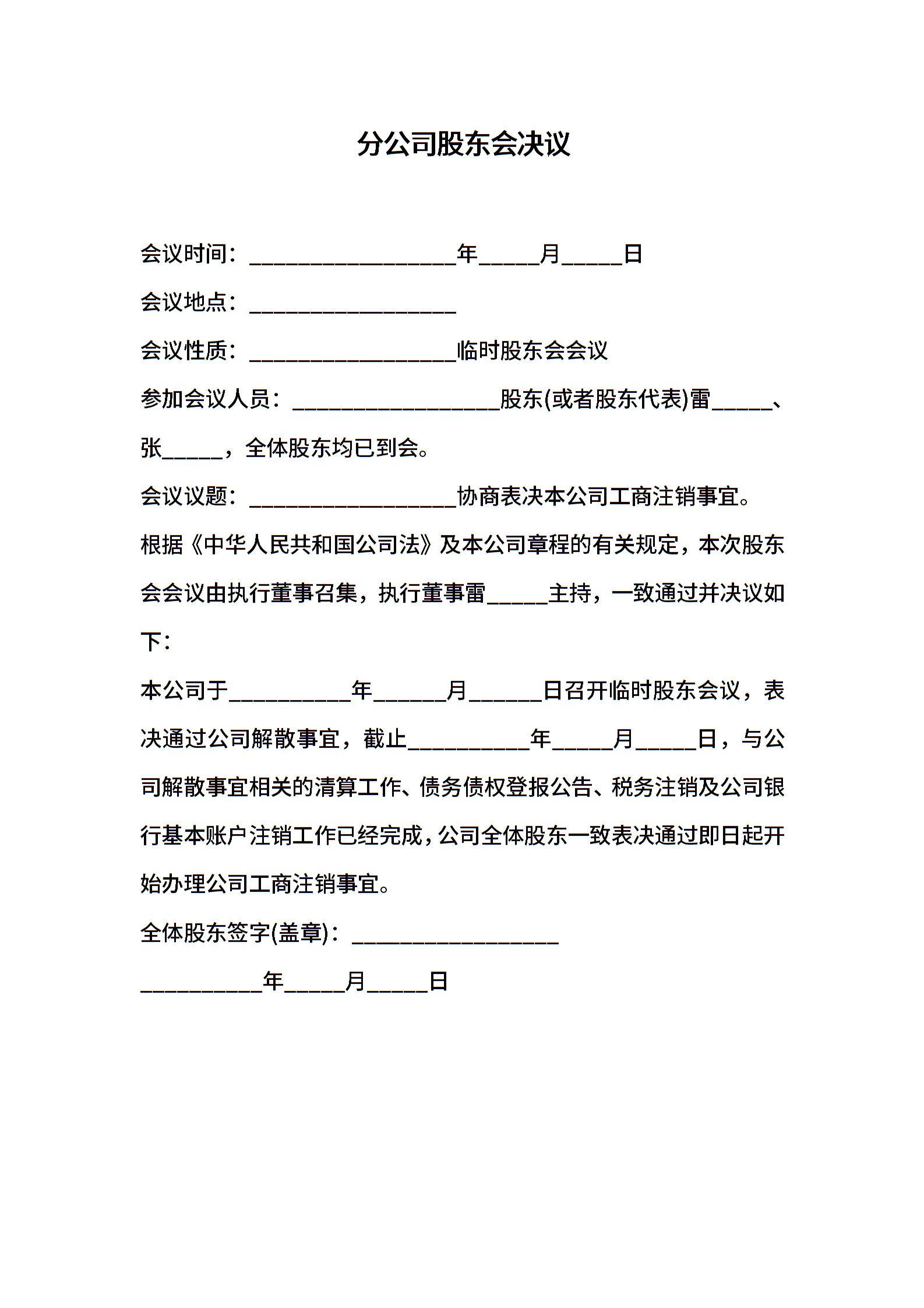 当前位置:量子办公 > 合同模板 > 股东会决议 >