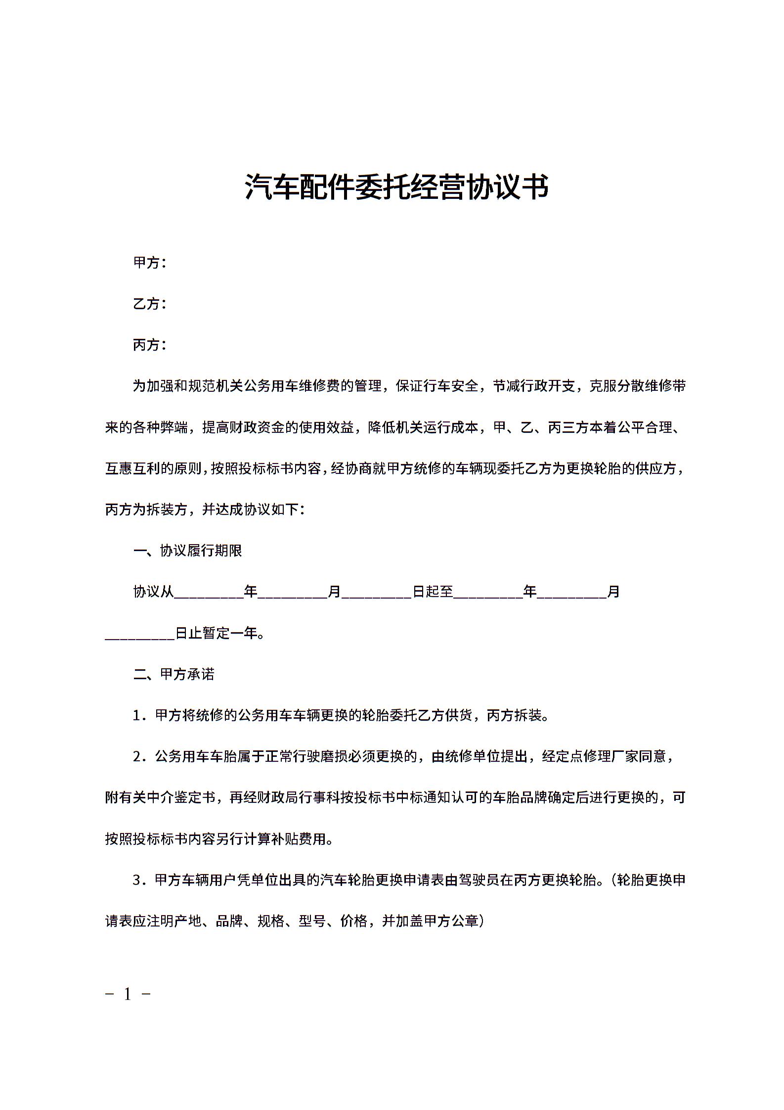 汽车配件委托经营协议书范文