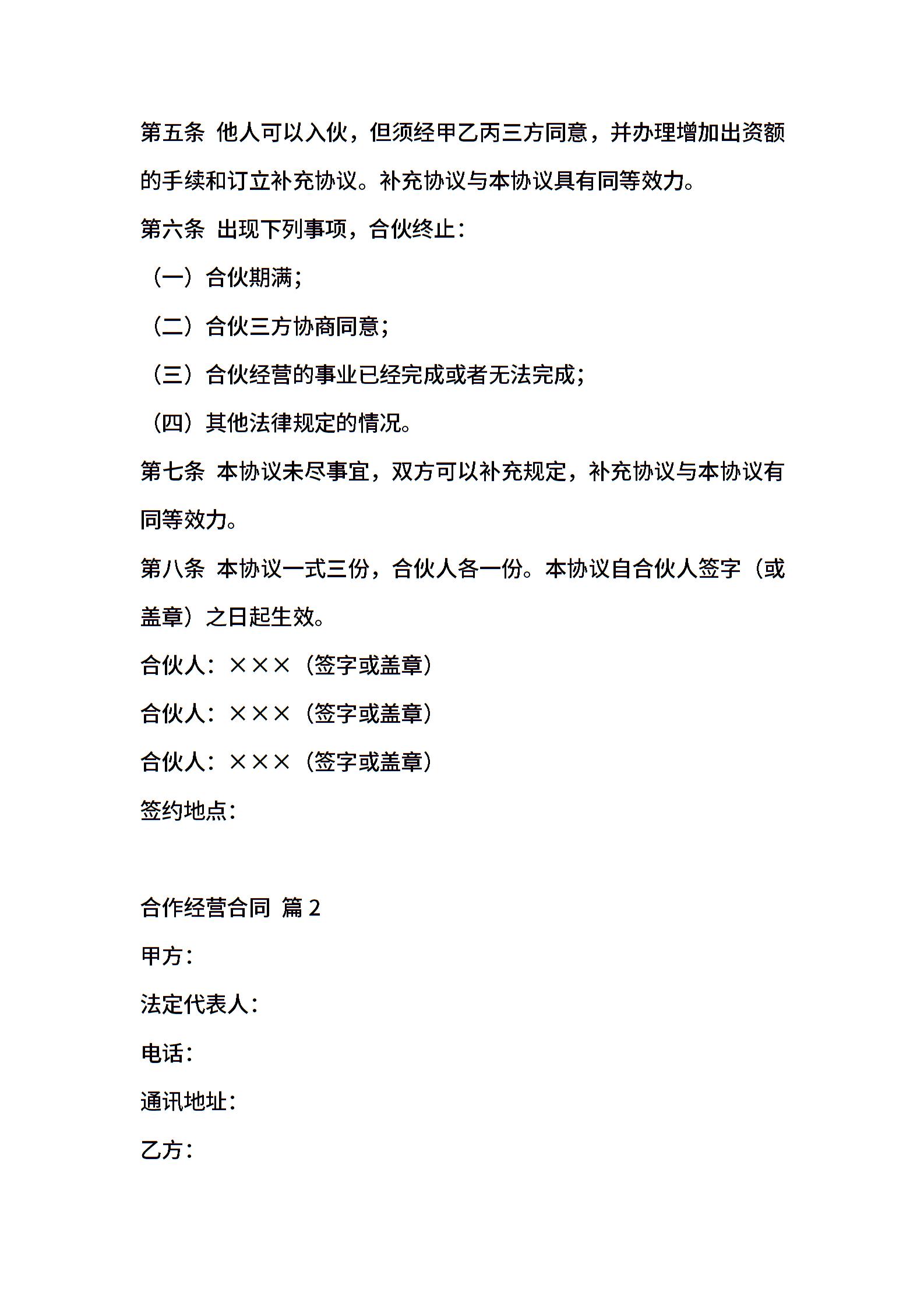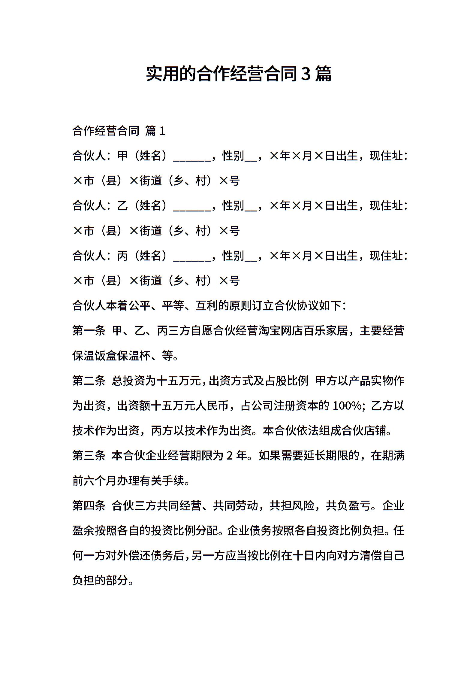 实用的合作经营合同3篇