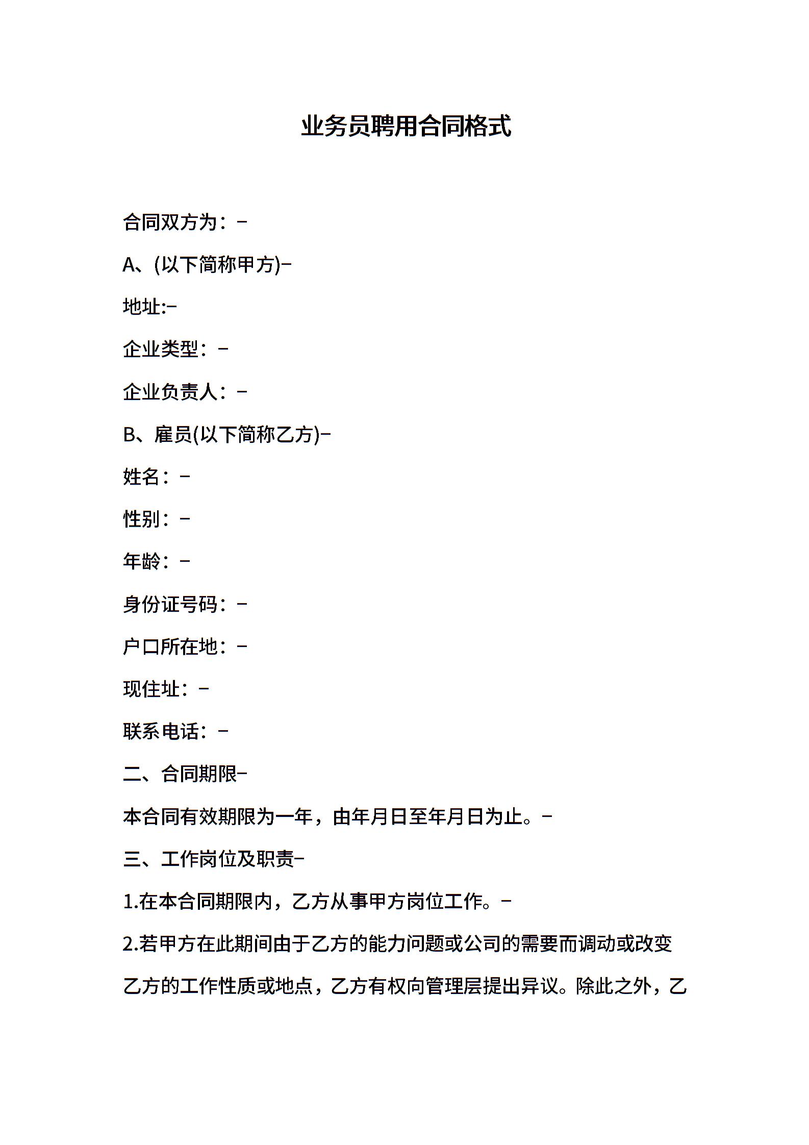 业务员聘用合同格式
