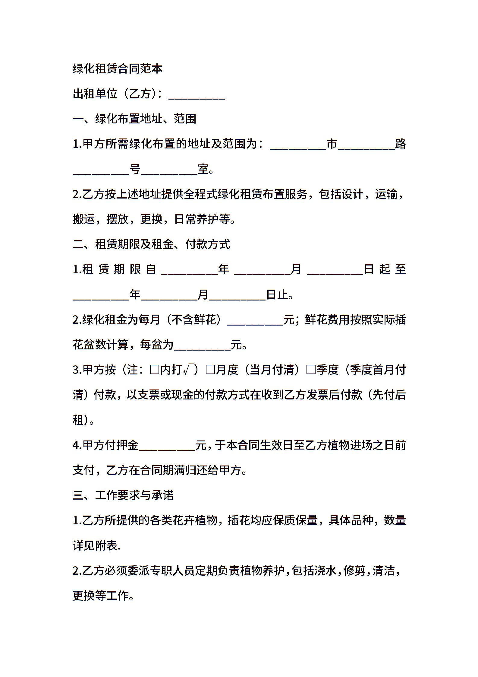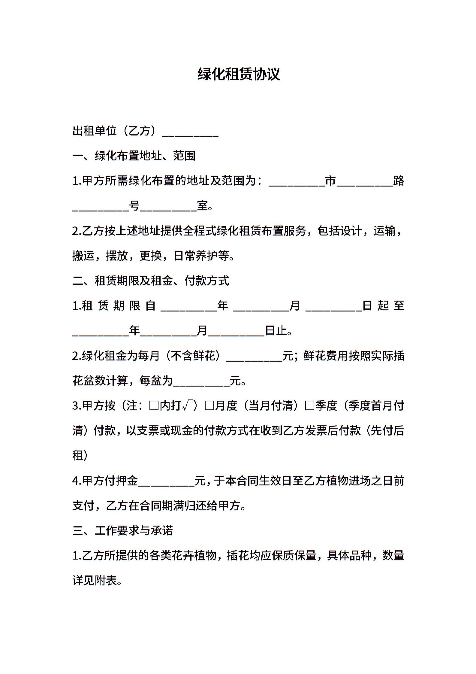 绿化租赁协议