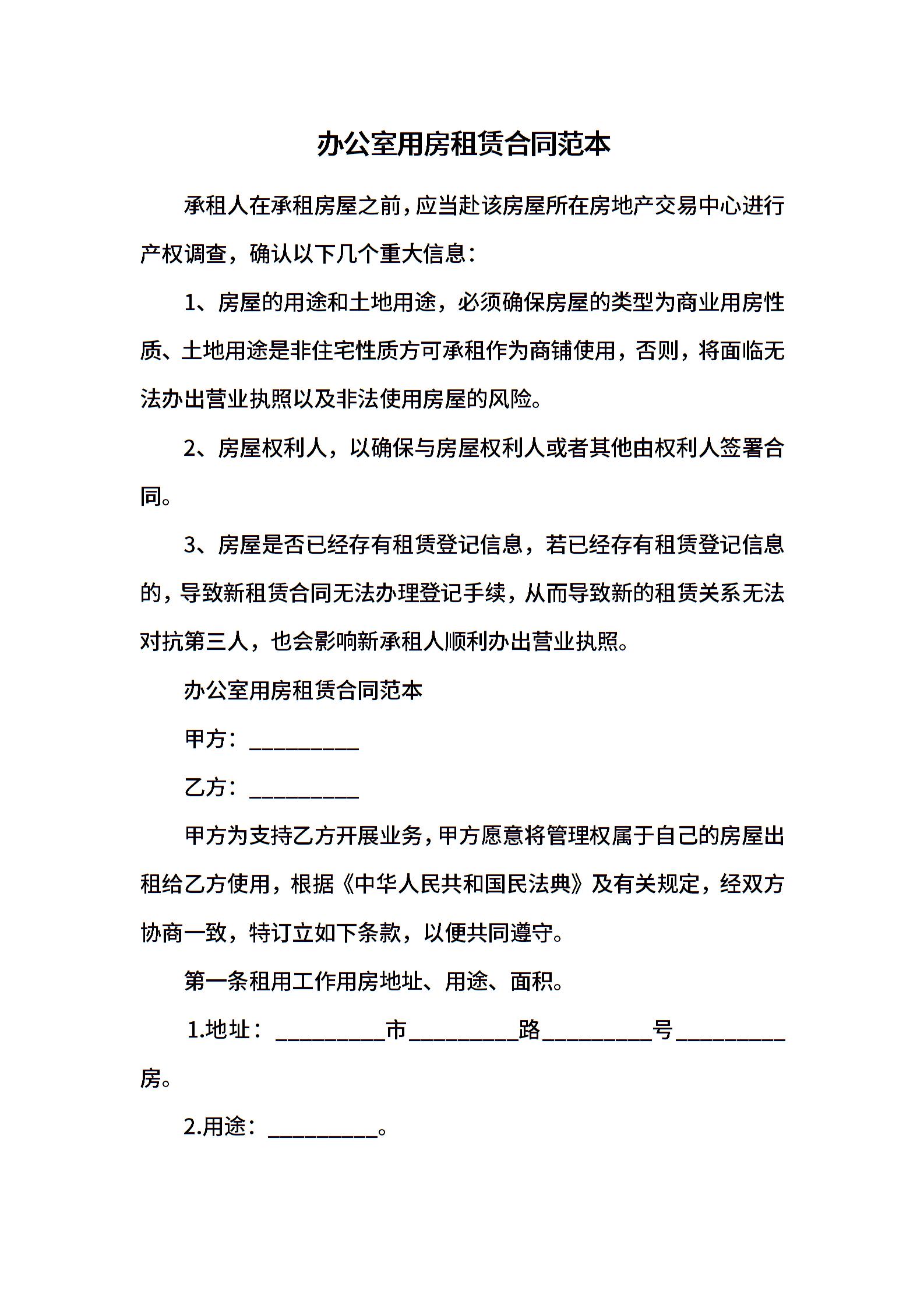 办公室用房租赁合同范本