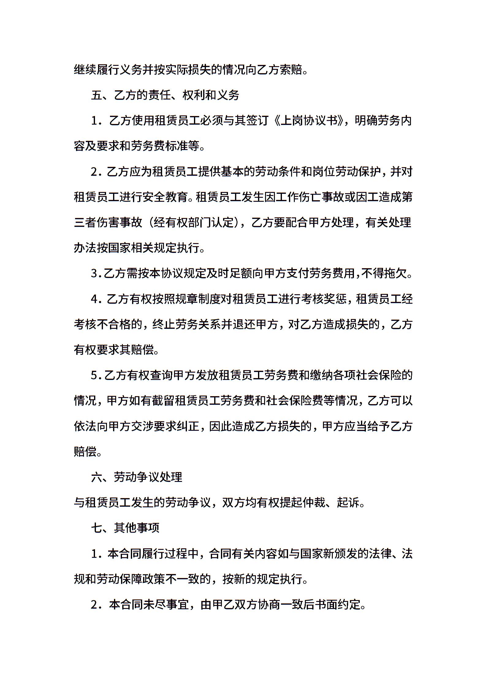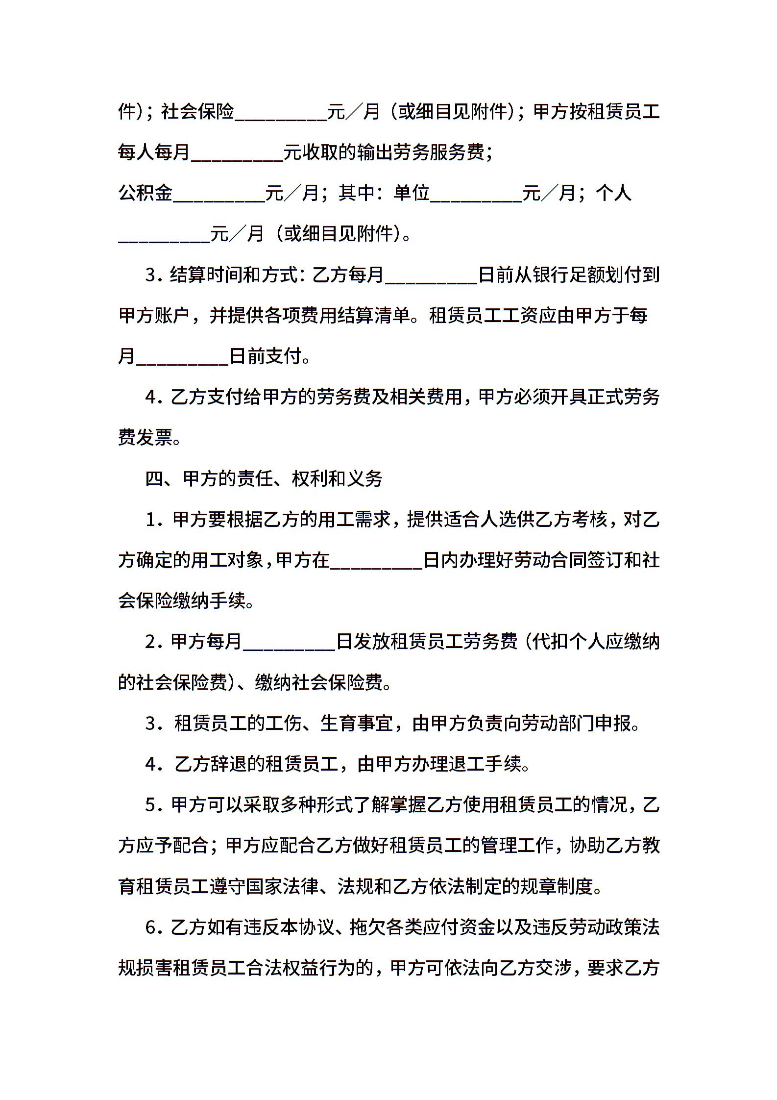 人员租赁协议书范文