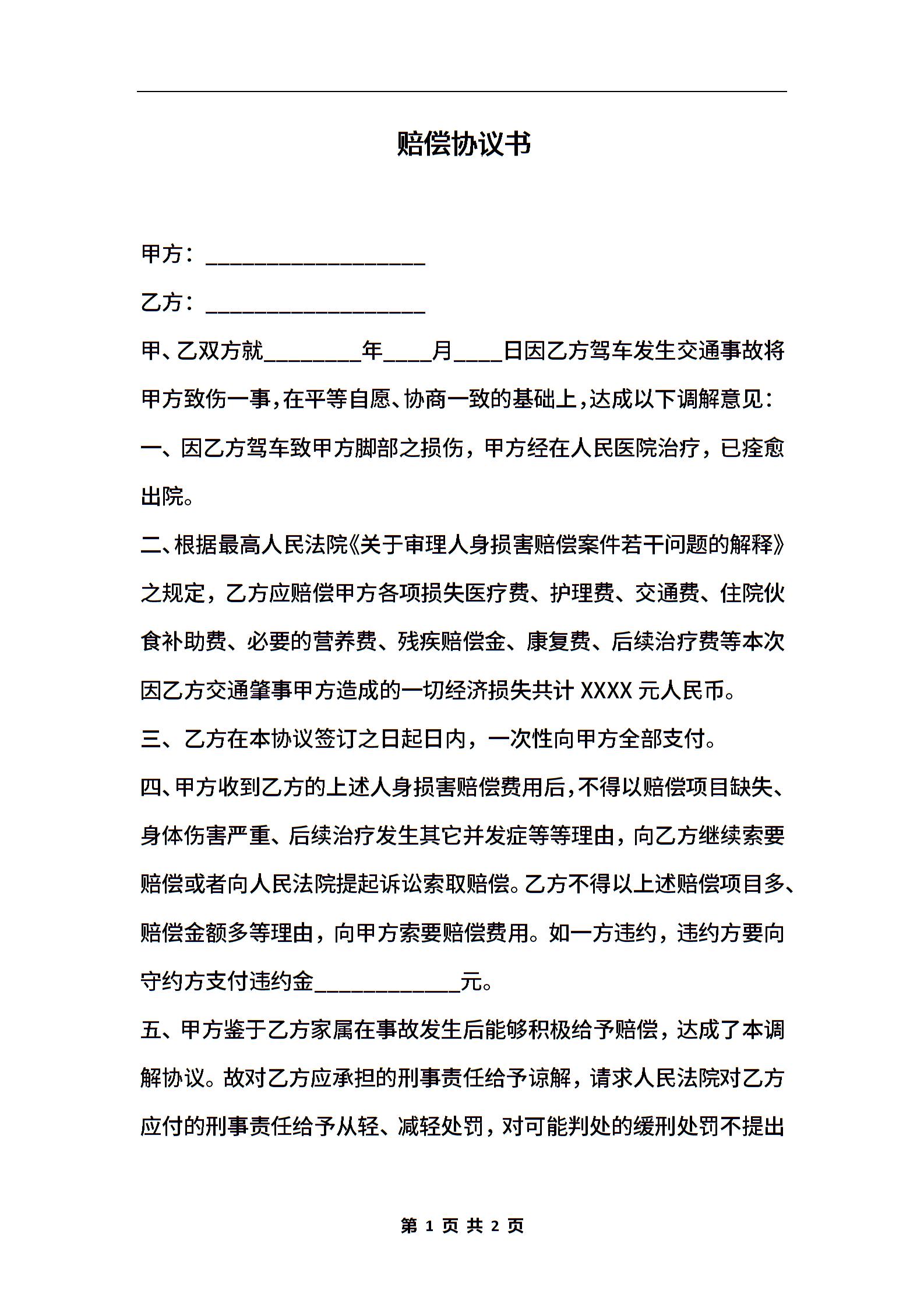 当前位置:量子办公 > 合同模板 > 赔偿协议 >