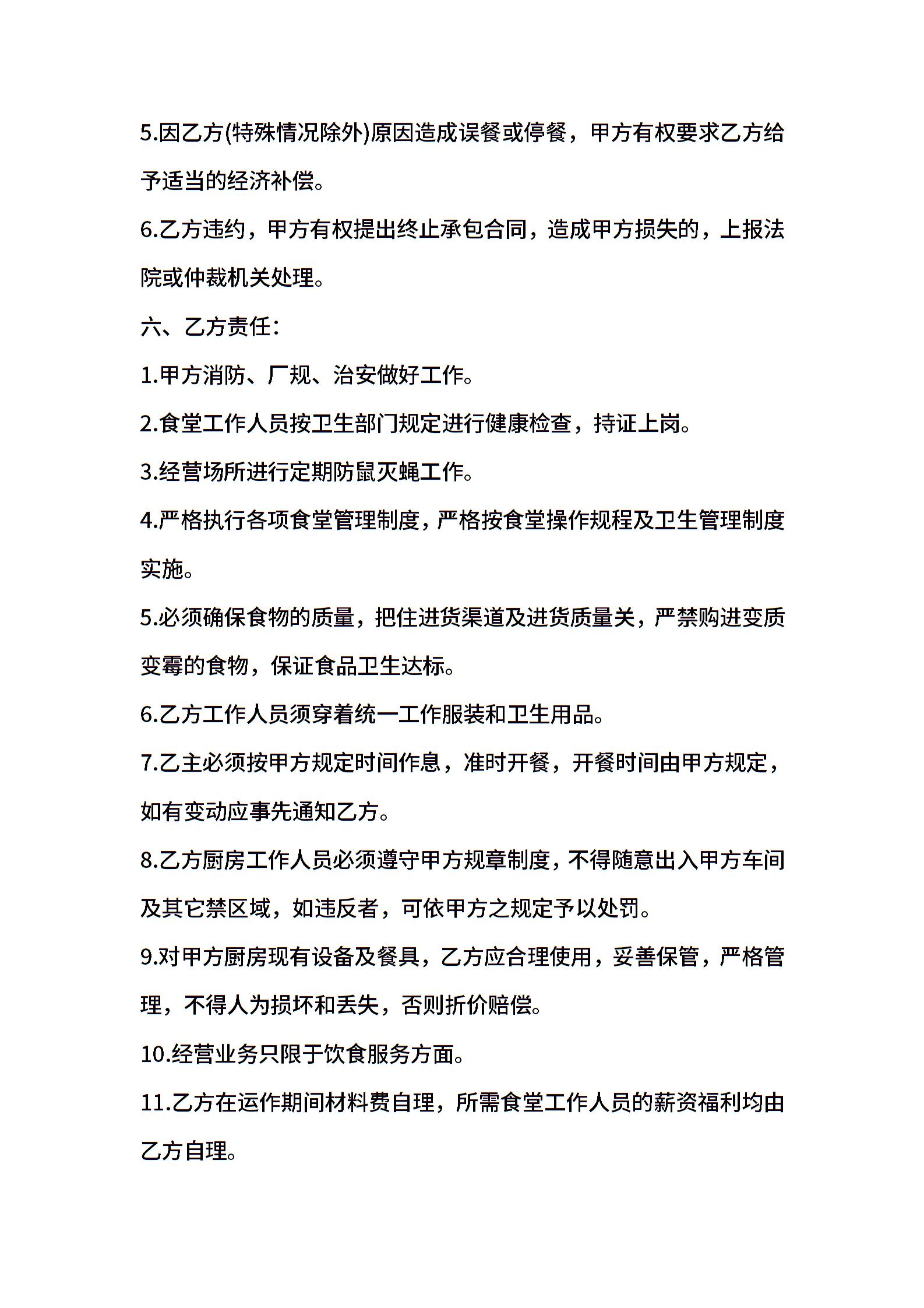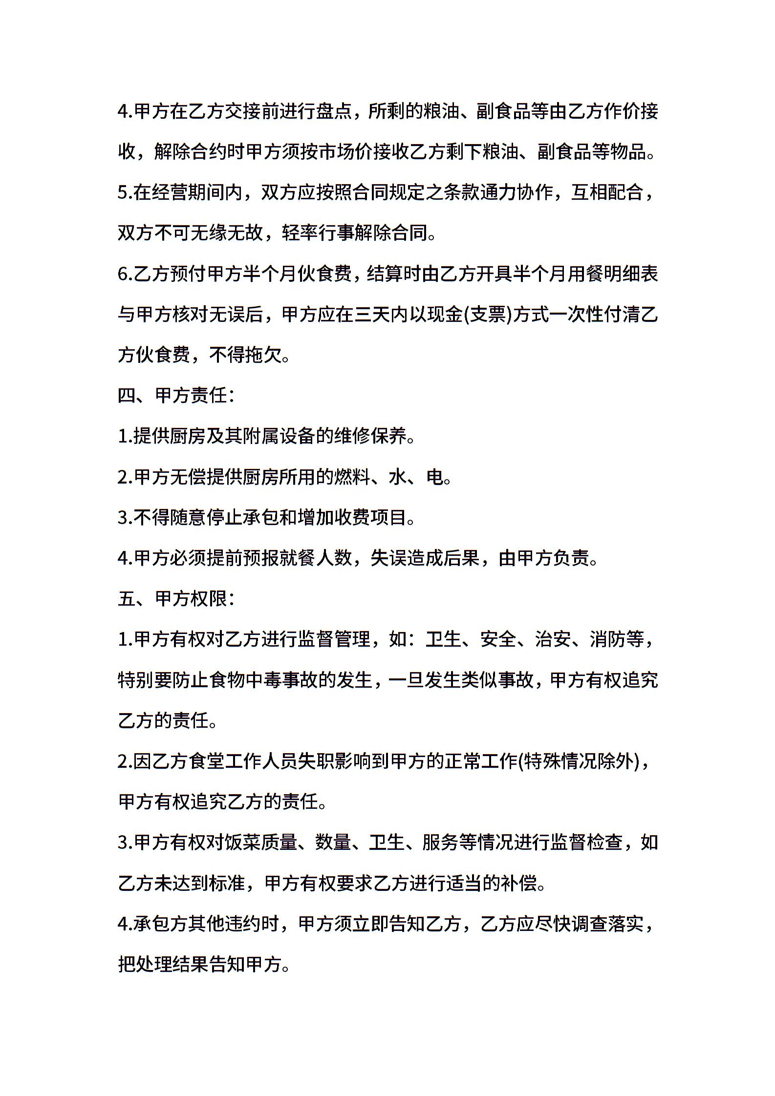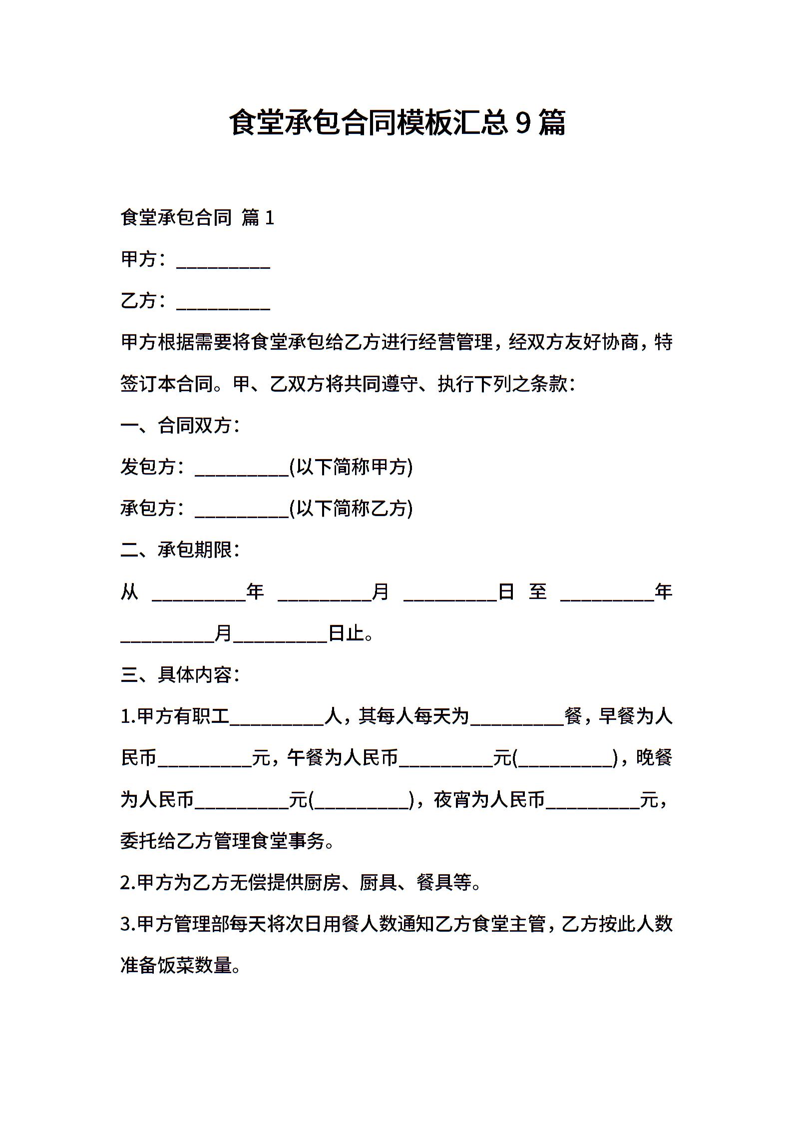 食堂承包合同模板汇总9篇