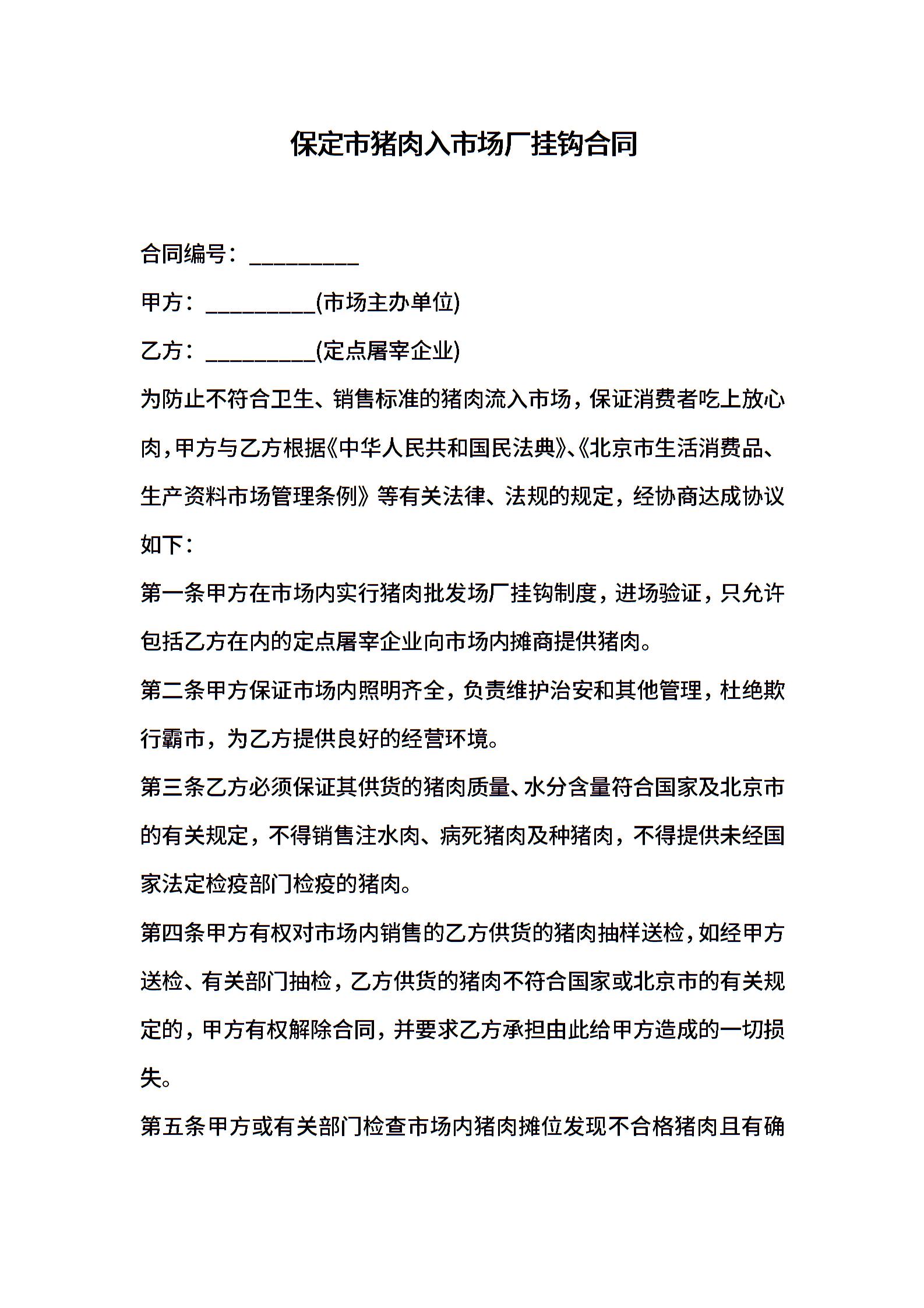 保定市猪肉入市场厂挂钩合同