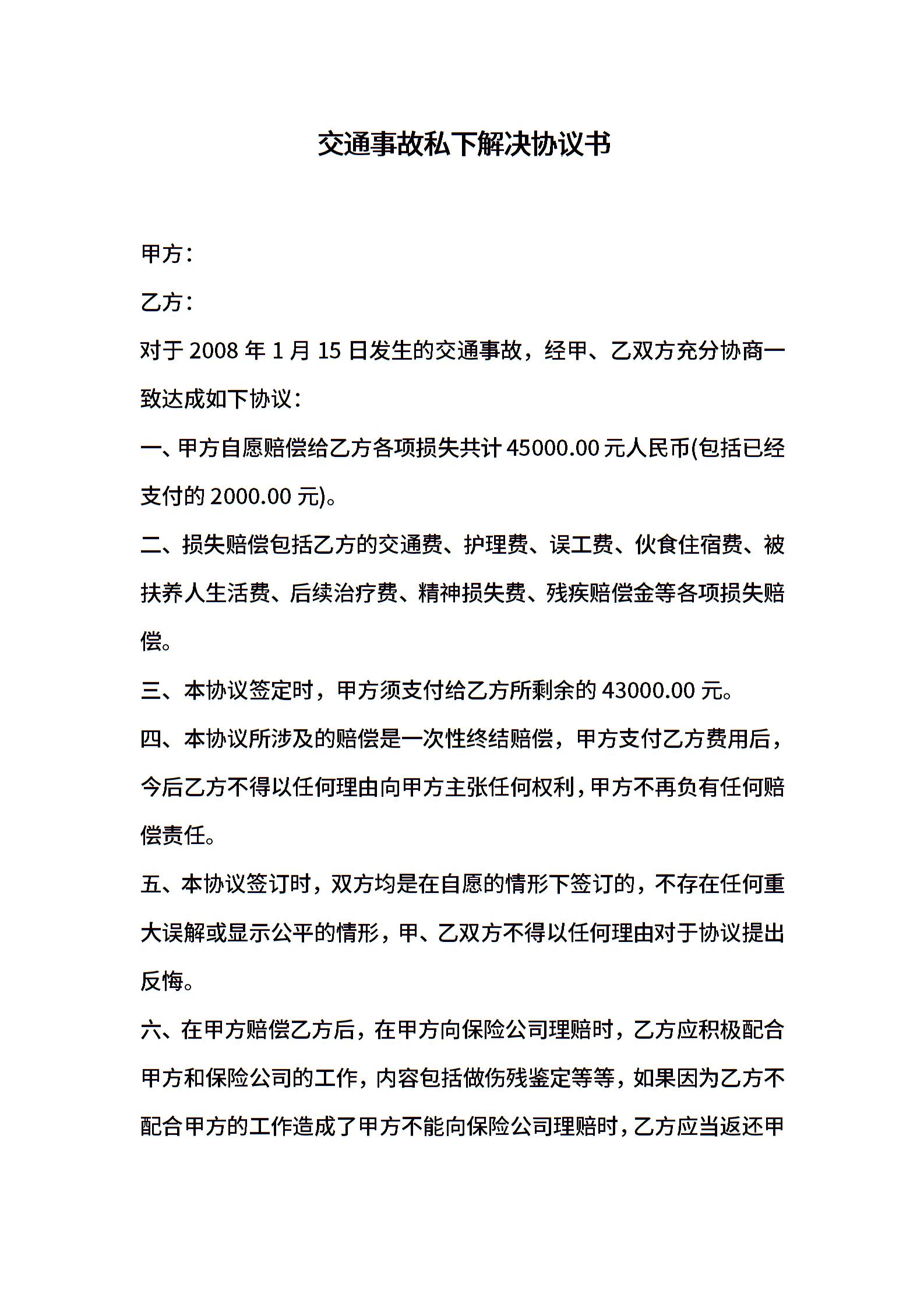 交通事故私下解决协议书