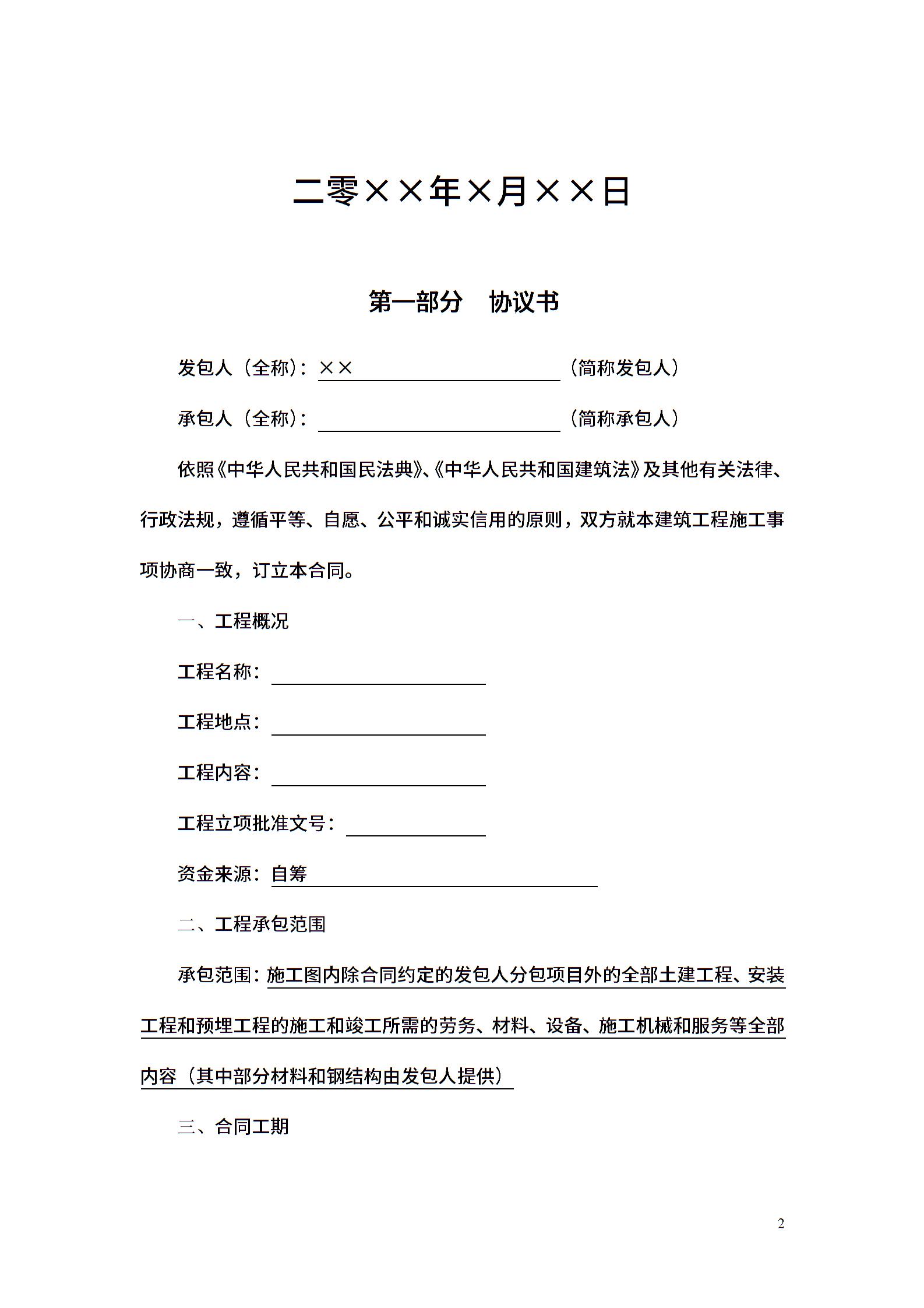 建筑施工合同范本模板