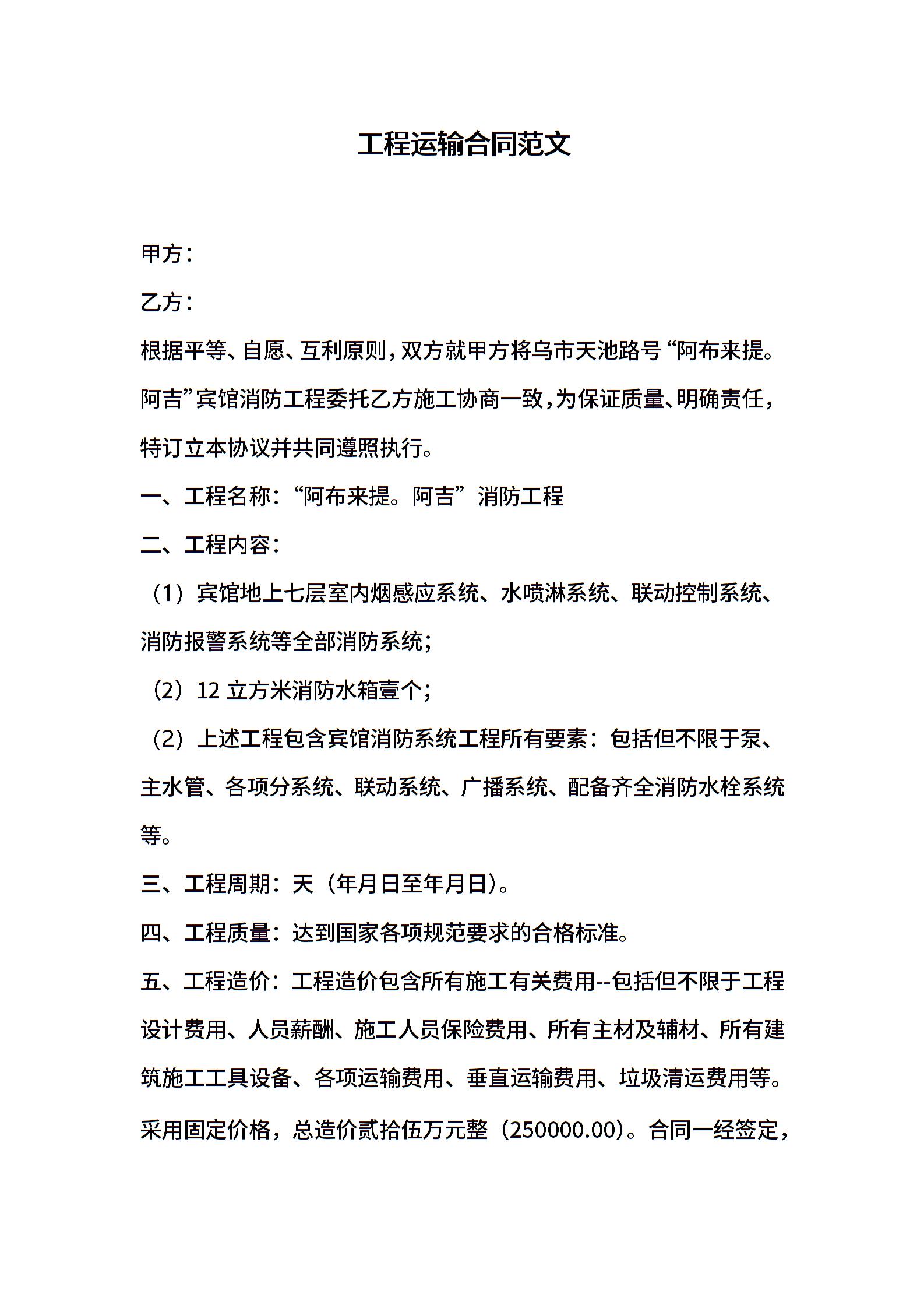 工程运输合同范文