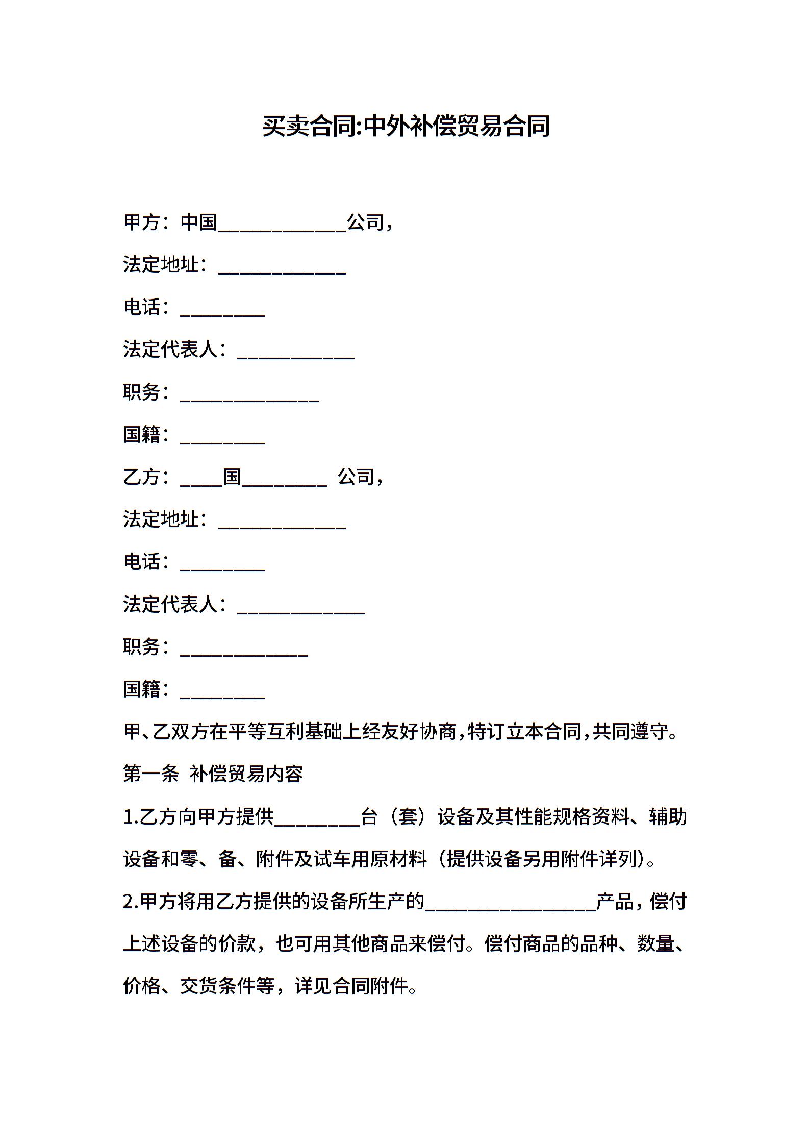 买卖合同-中外补偿贸易合同