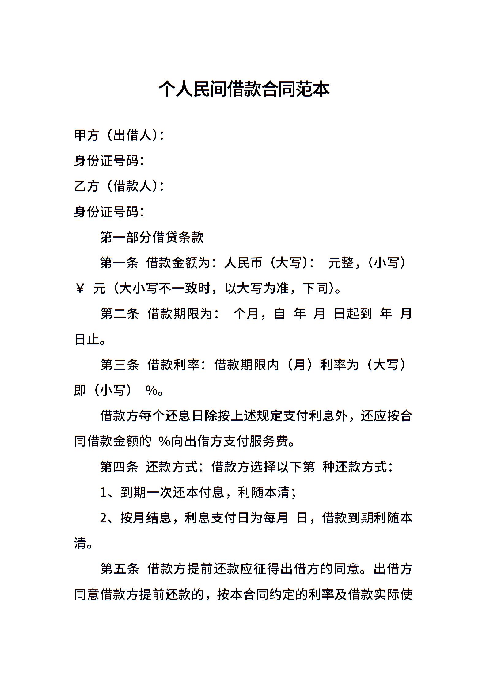 个人民间借款合同范本
