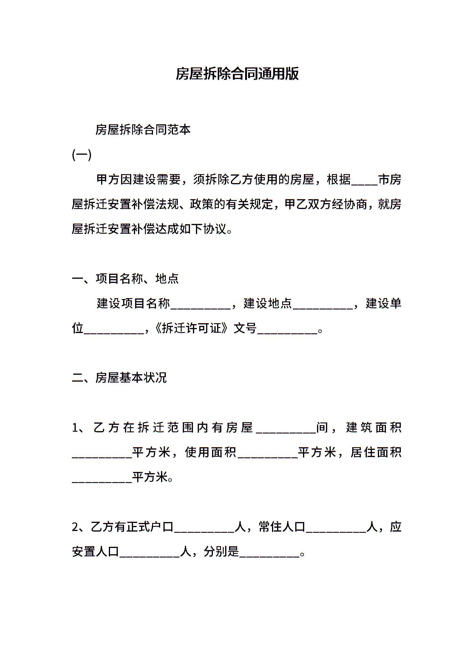 房屋拆除合同通用版