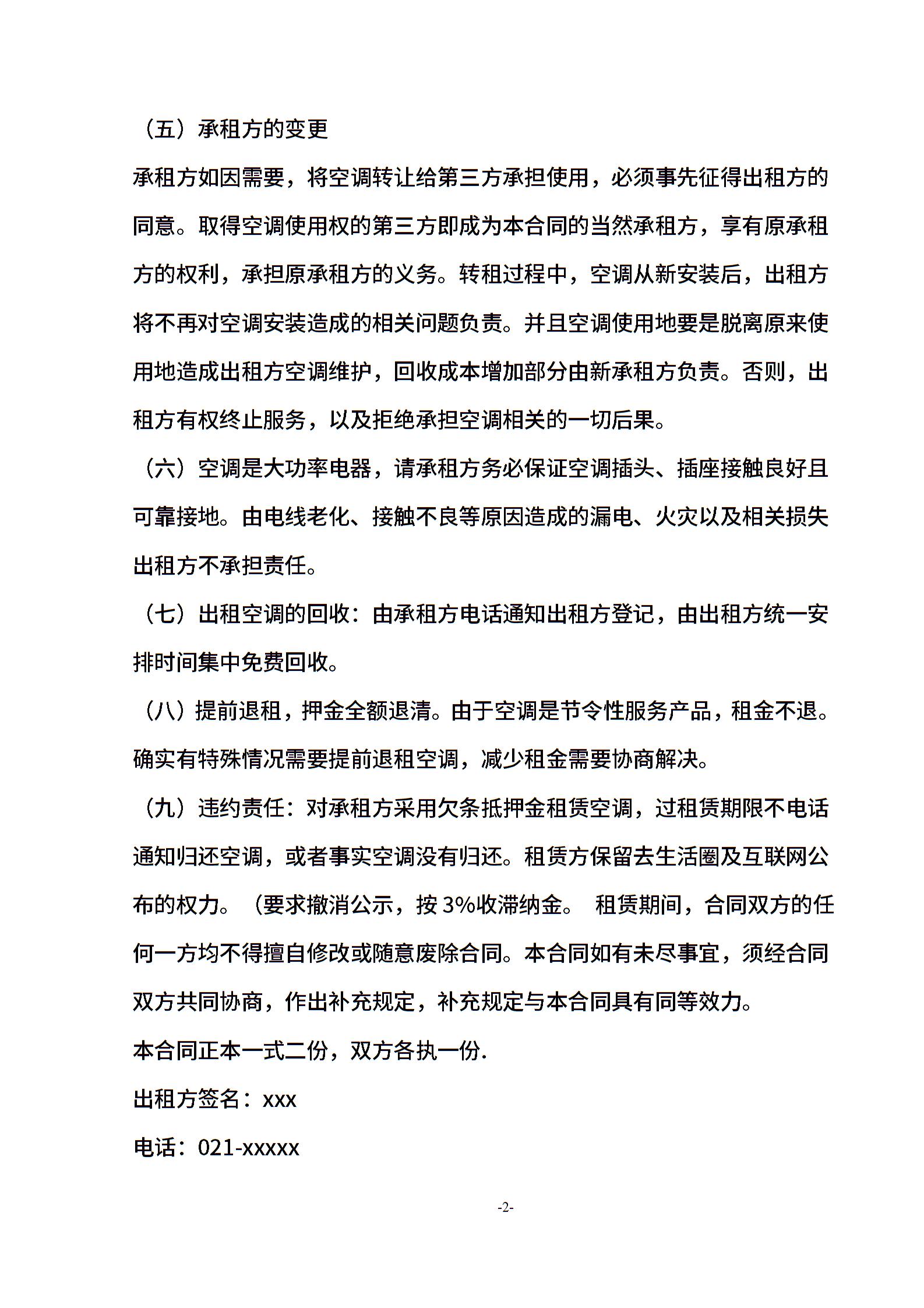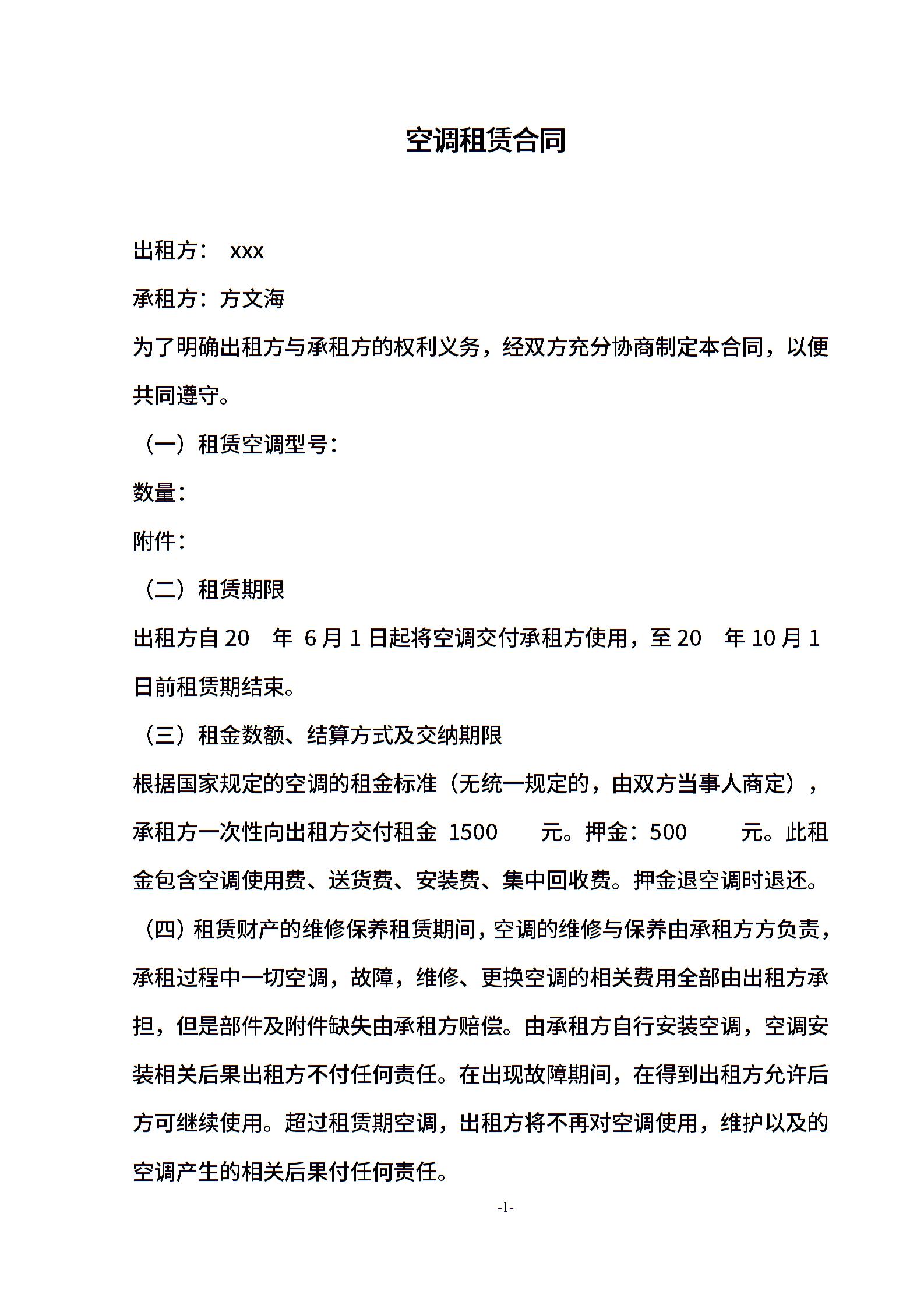 夏季空调出租必备——空调租赁合同