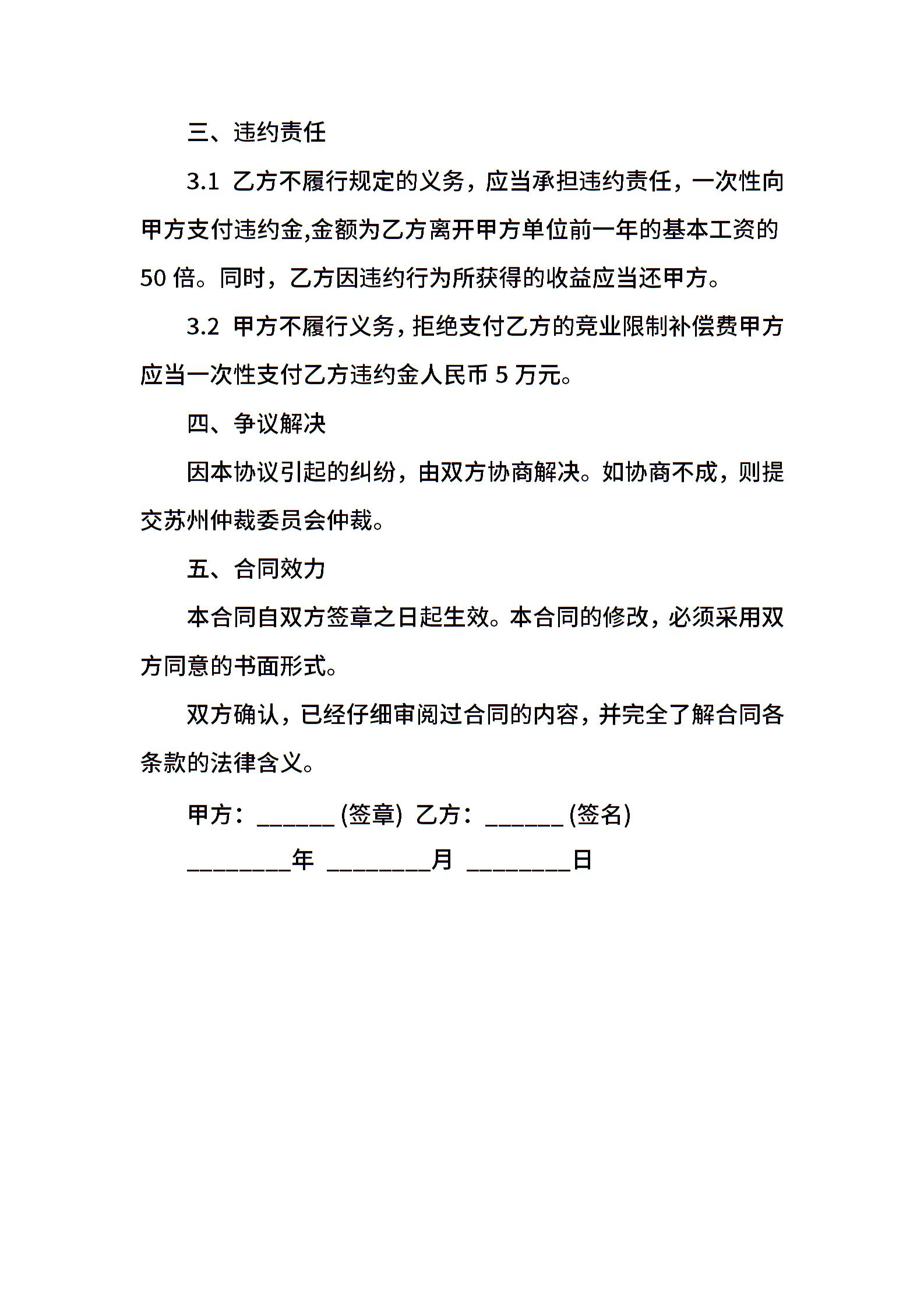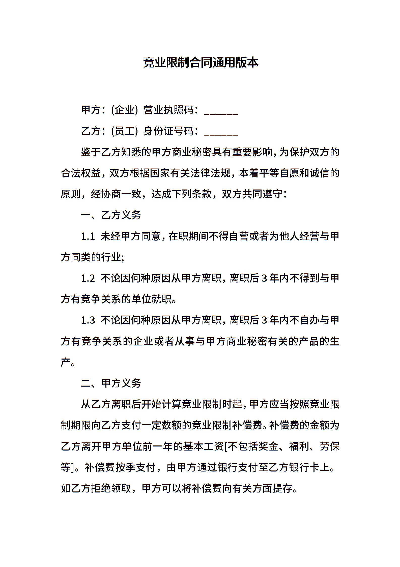 竞业限制合同通用版本