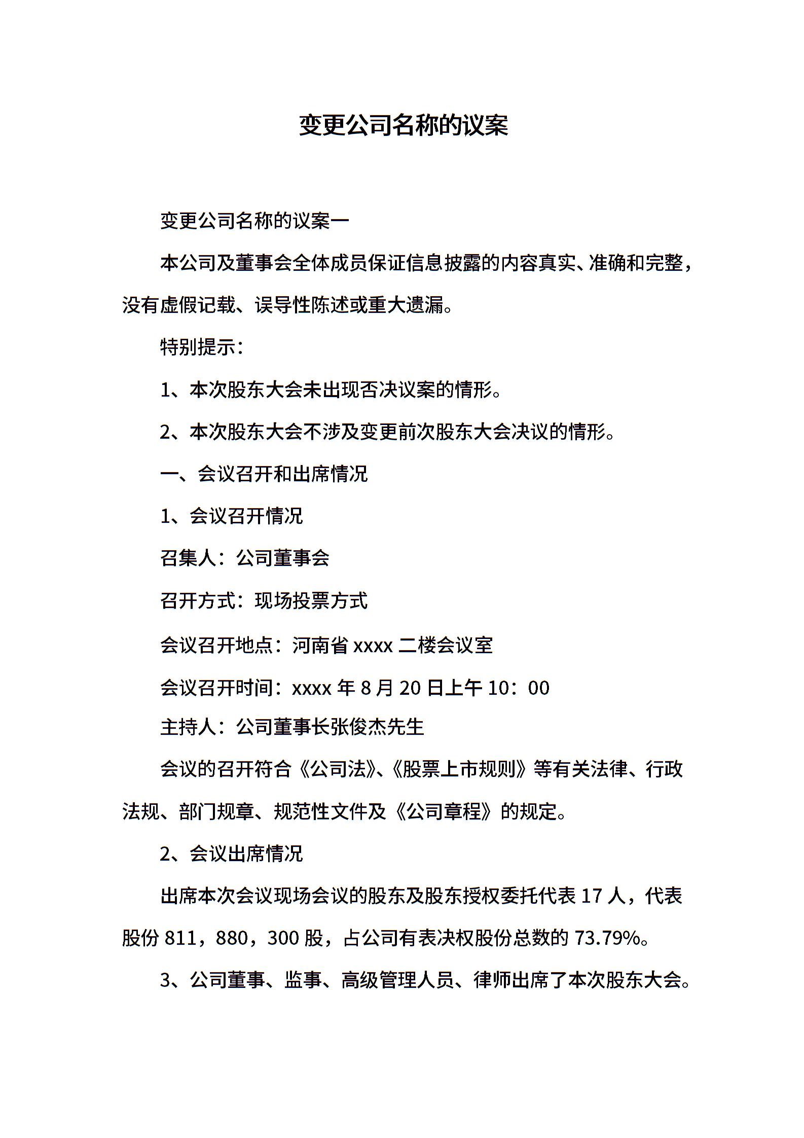 变更公司名称的议案