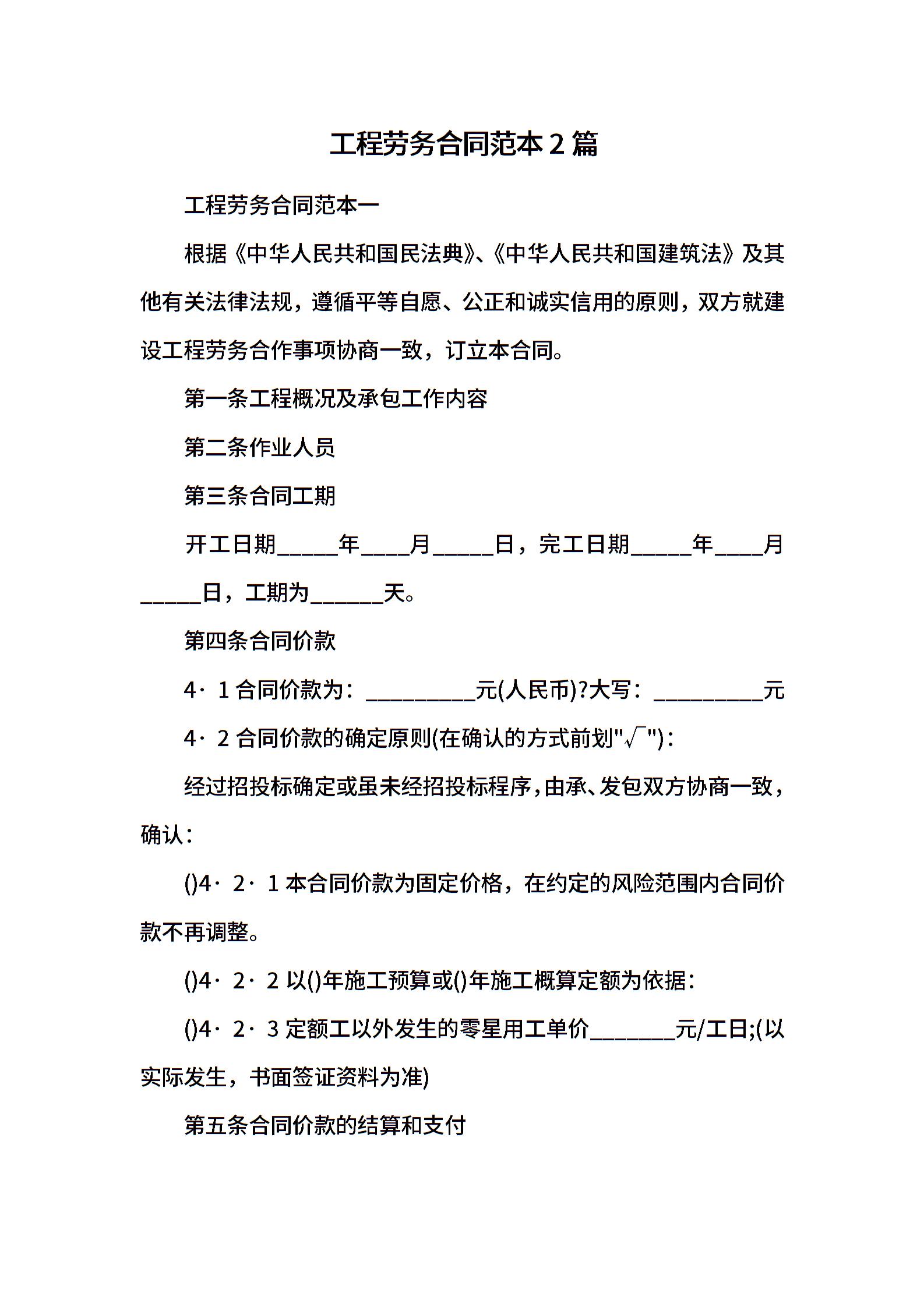 工程劳务合同范本2篇