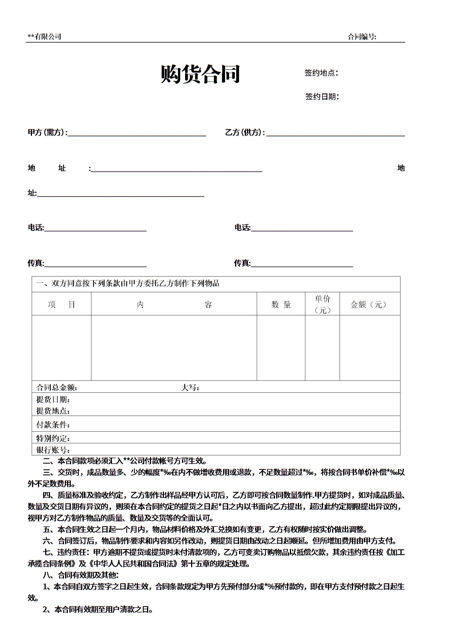 当前位置:量子办公 > 合同模板 > 购销合同 >