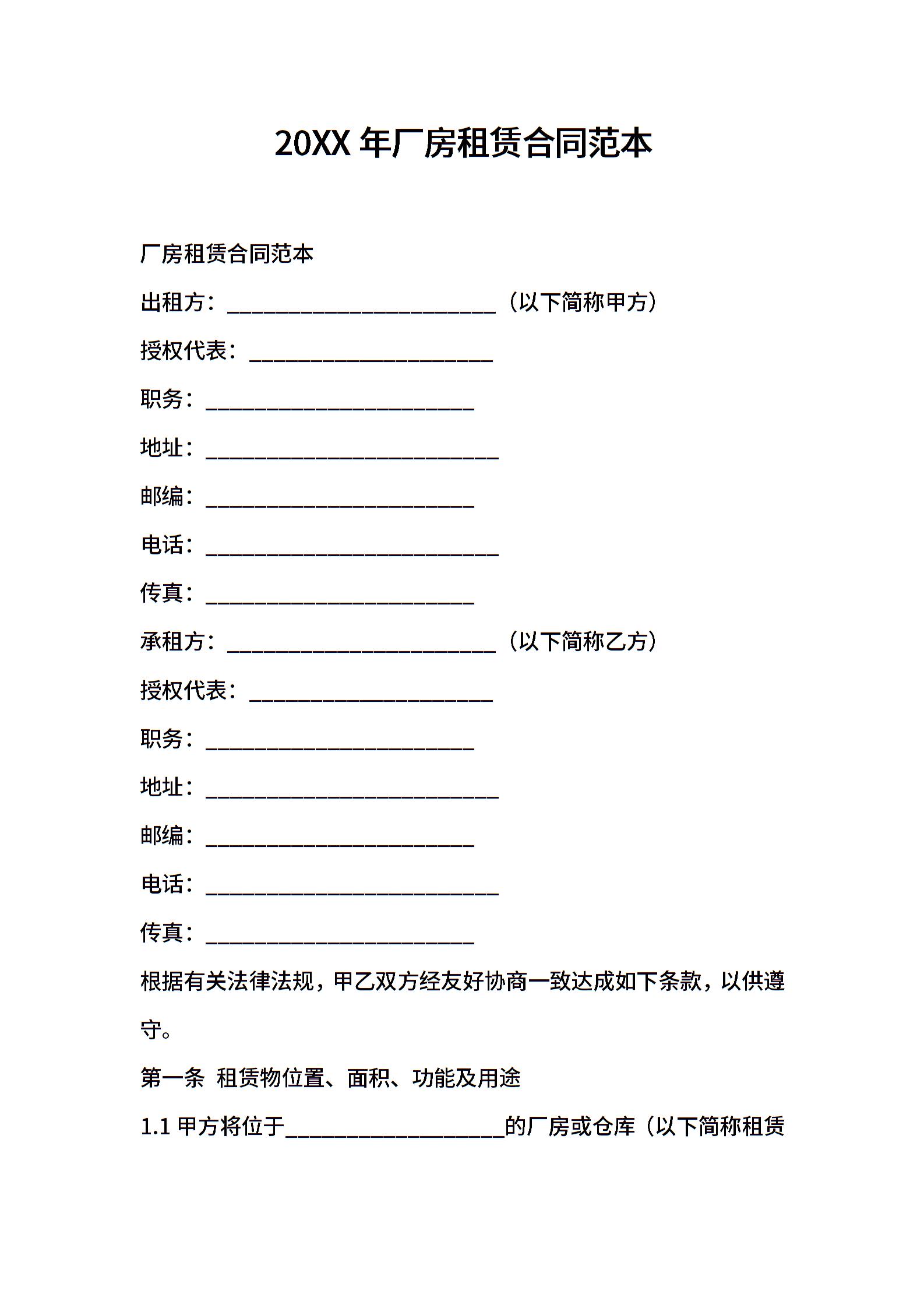 2021年厂房租赁合同范本