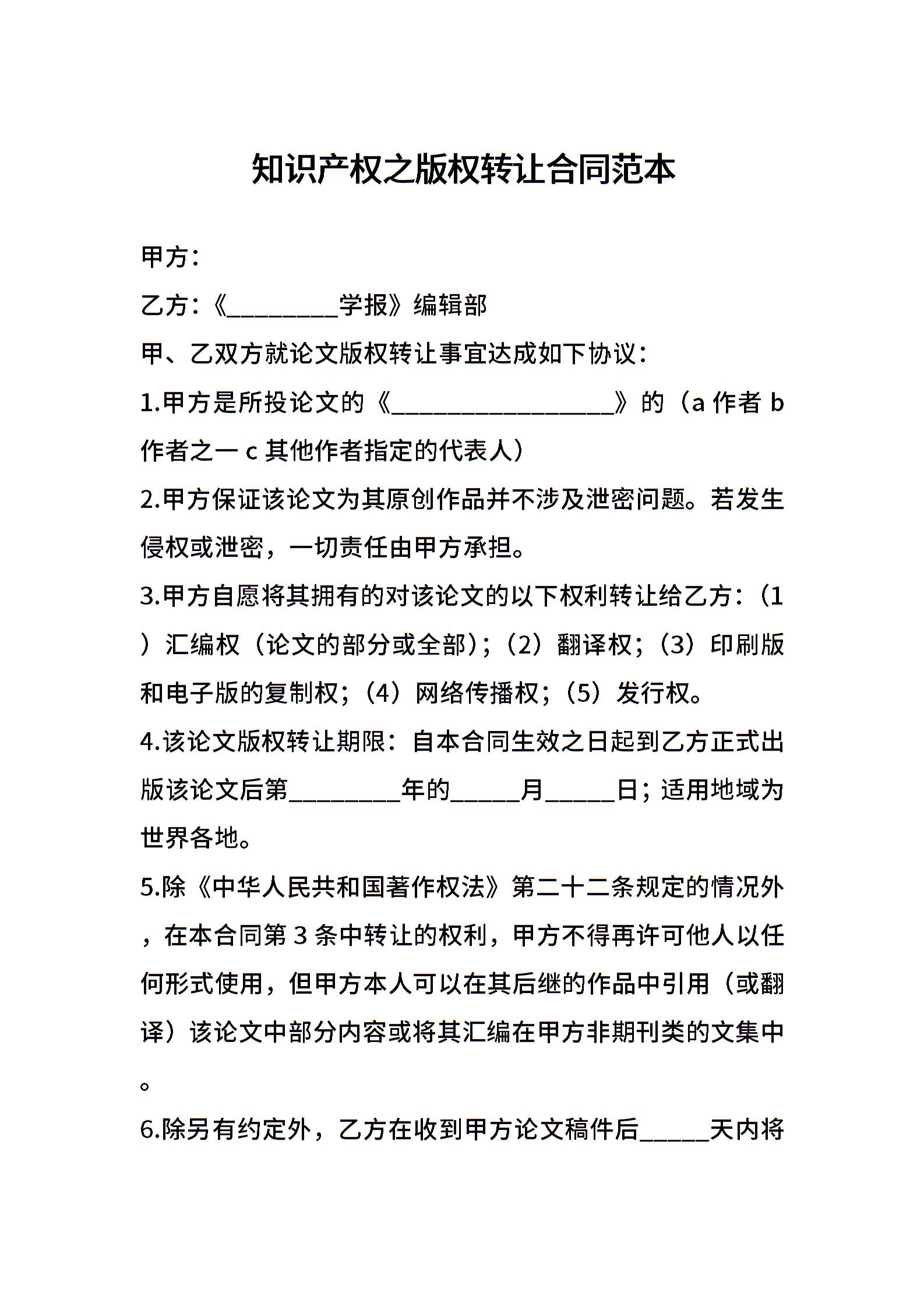当前位置:量子办公 > 合同模板 > 知识产权 >