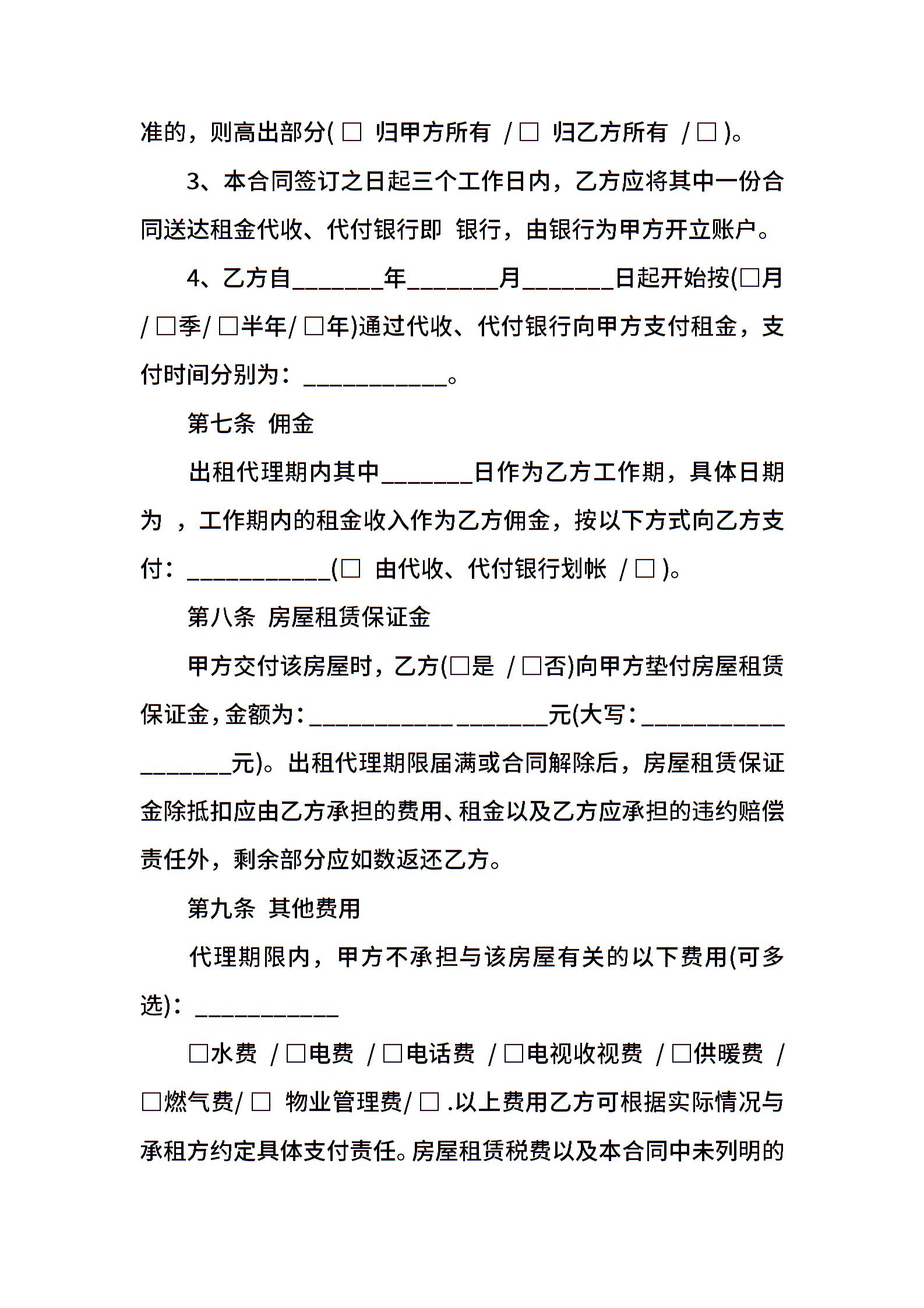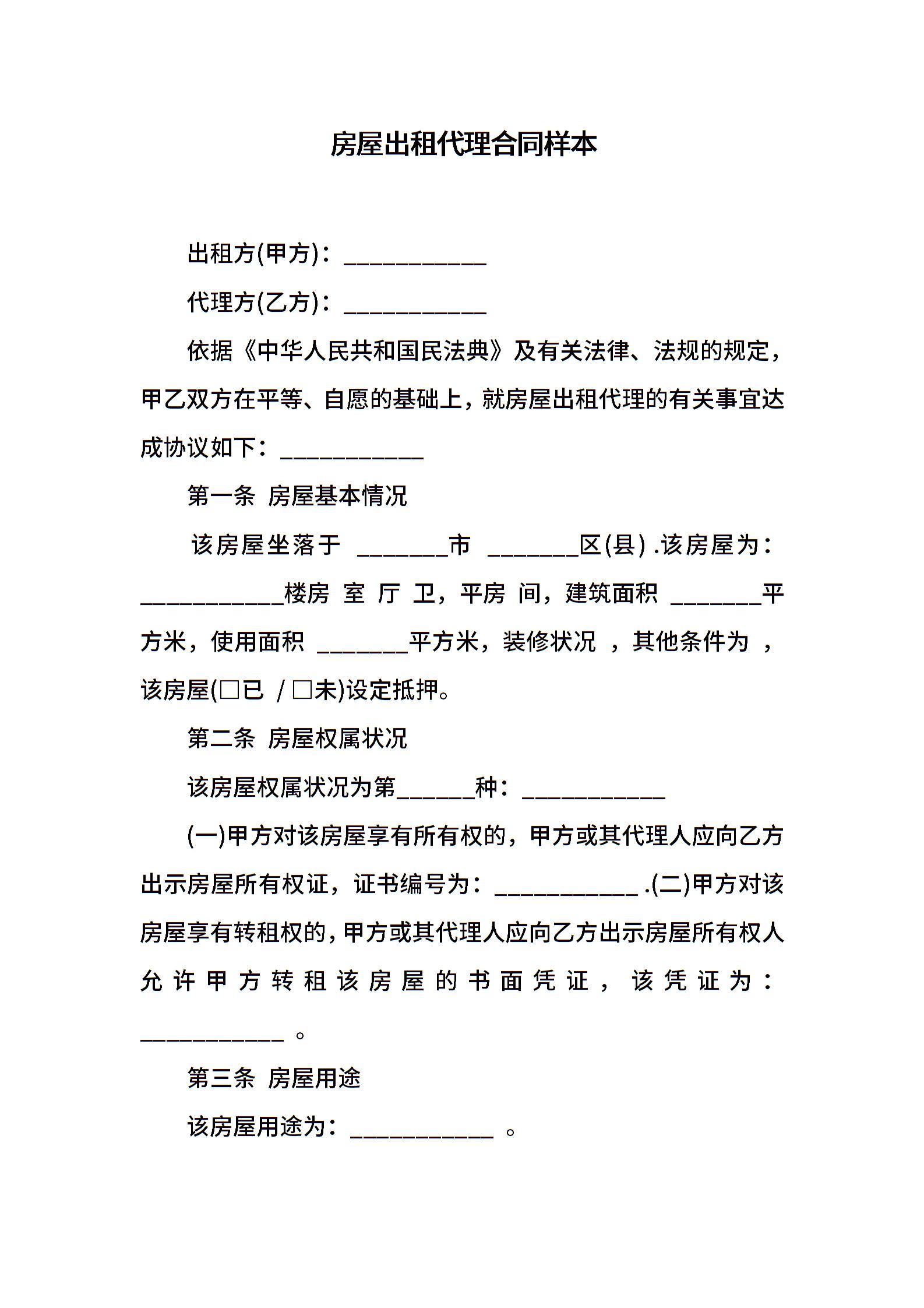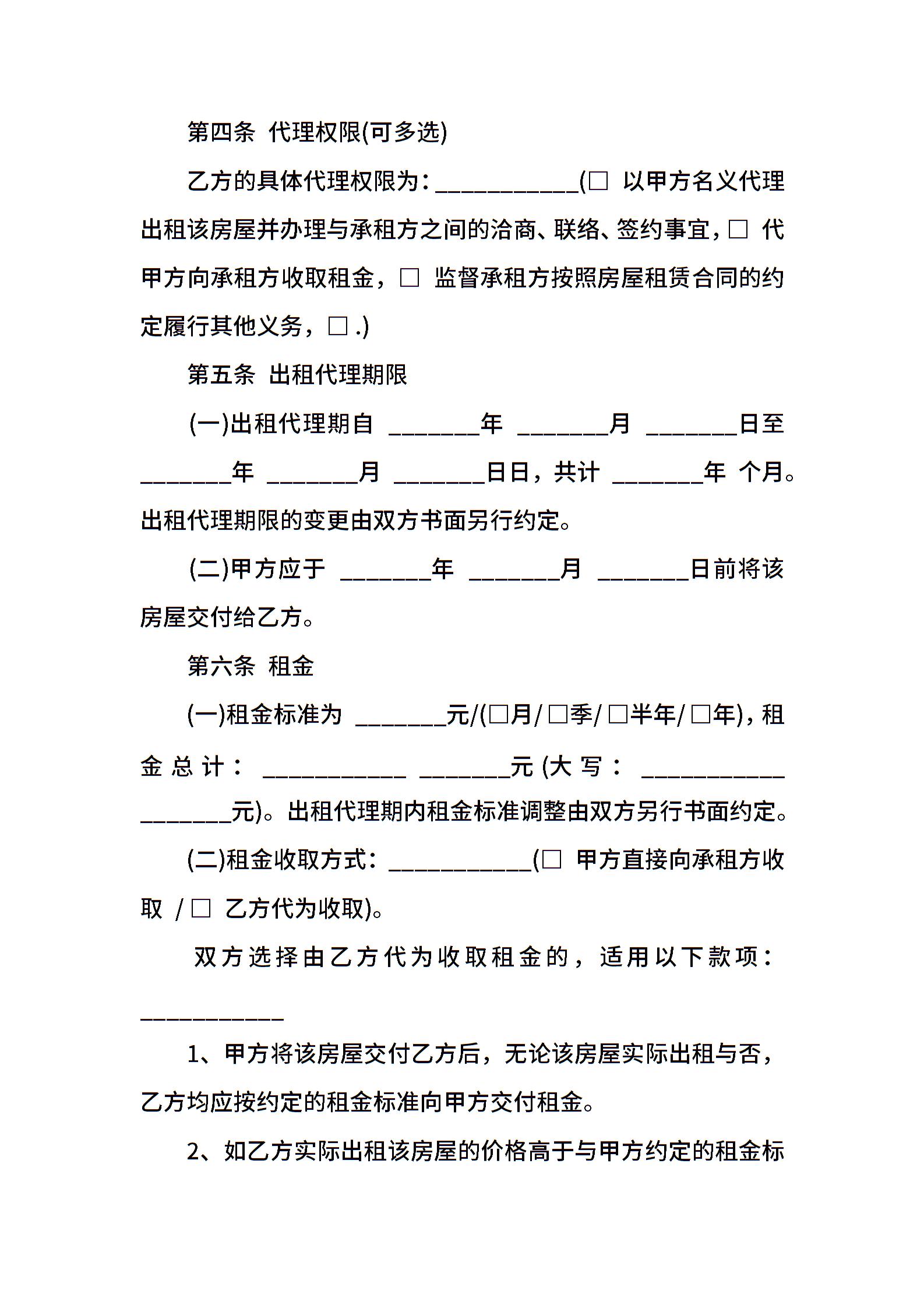 房屋出租代理合同样本