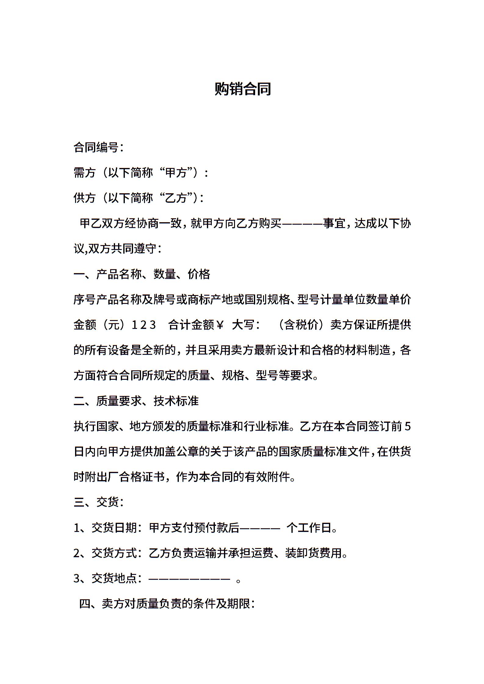 当前位置:量子办公 > 合同模板 > 购销合同 >