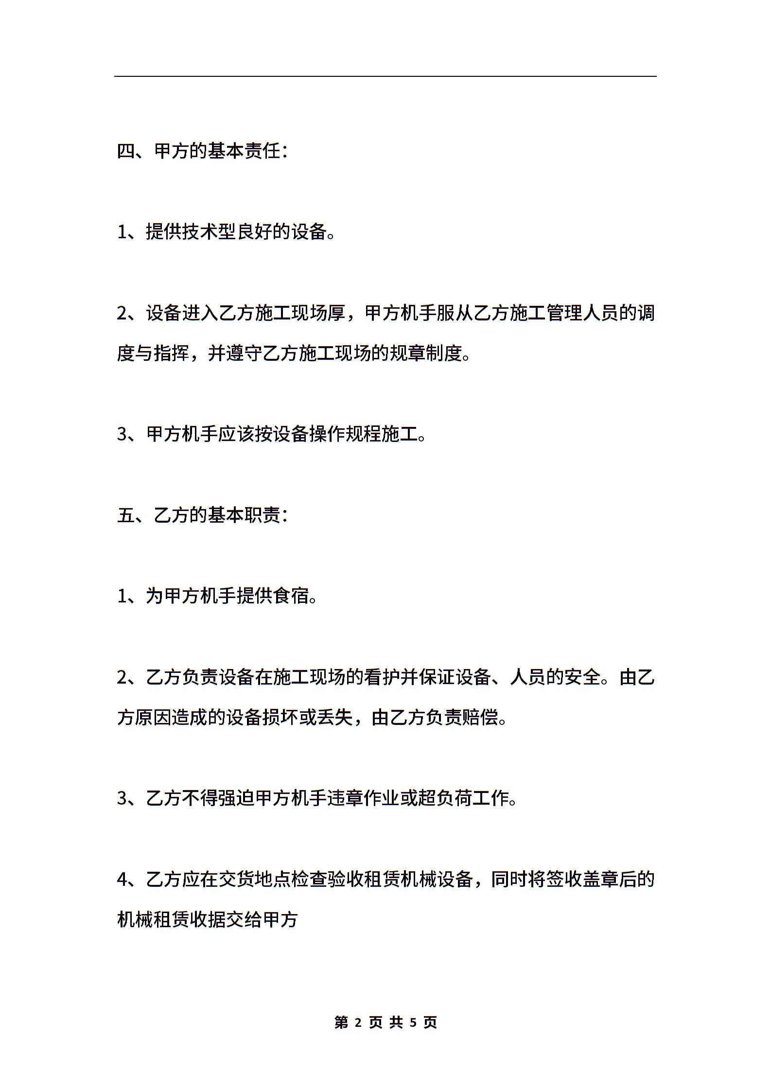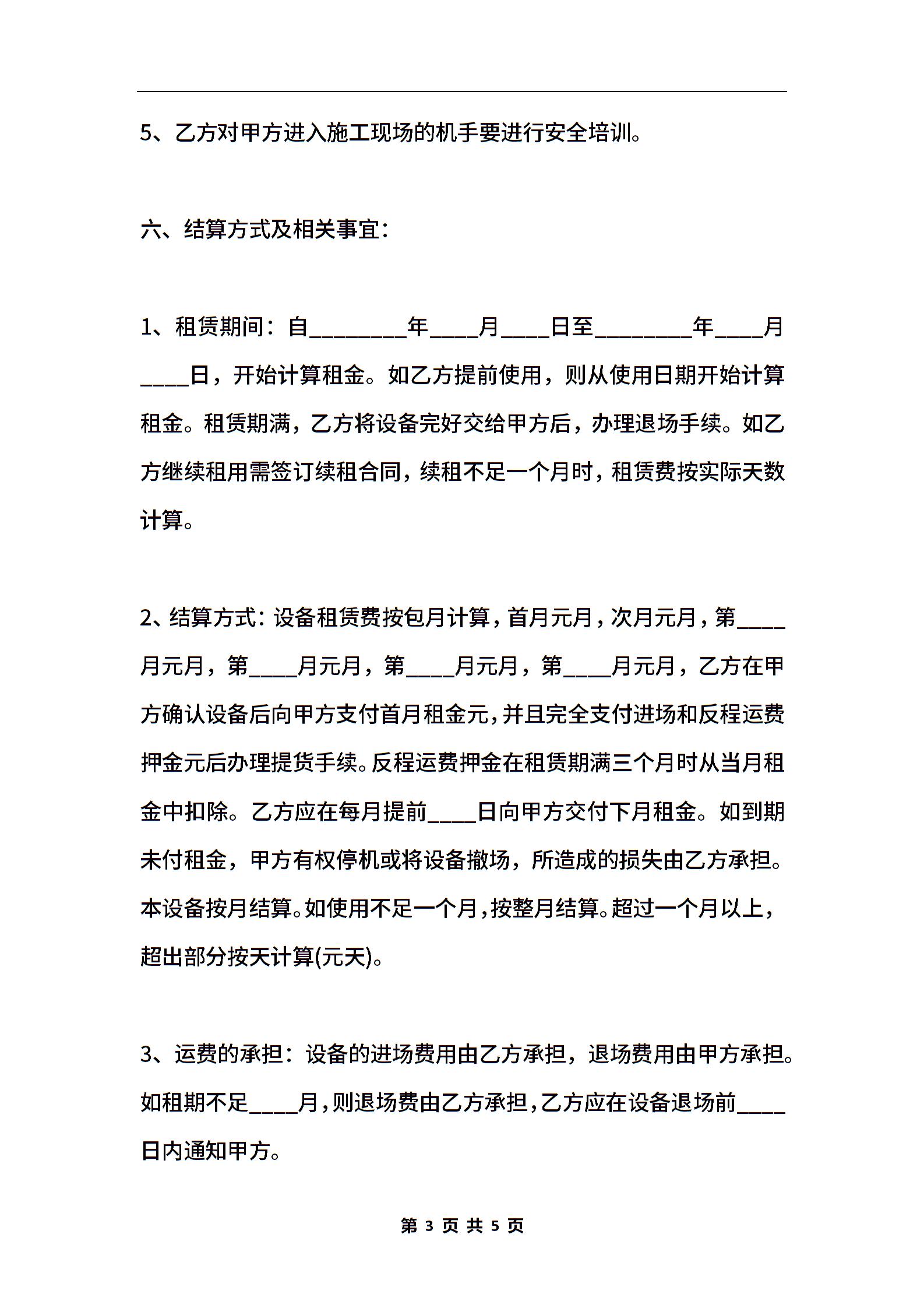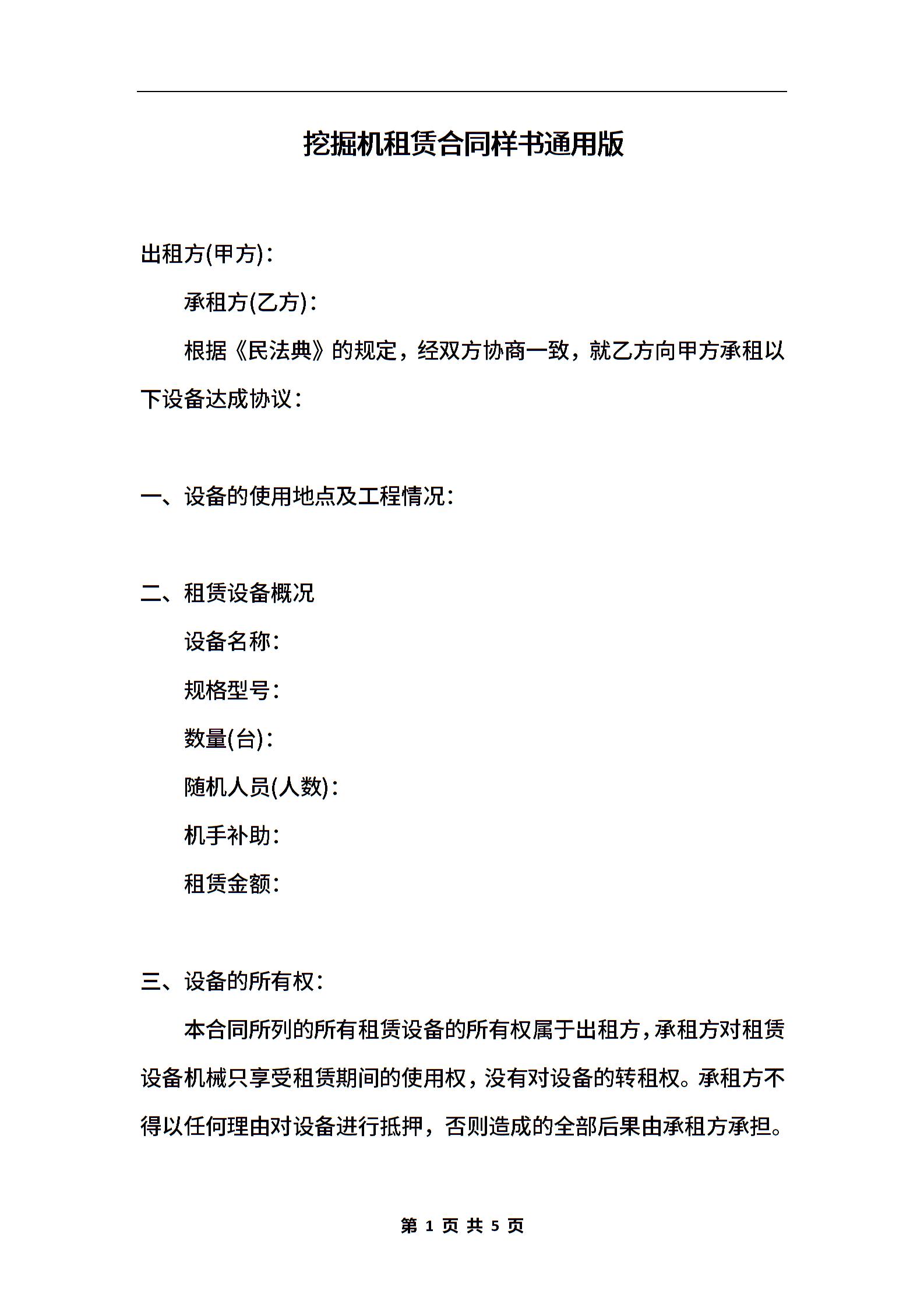 挖掘机租赁合同样书通用版