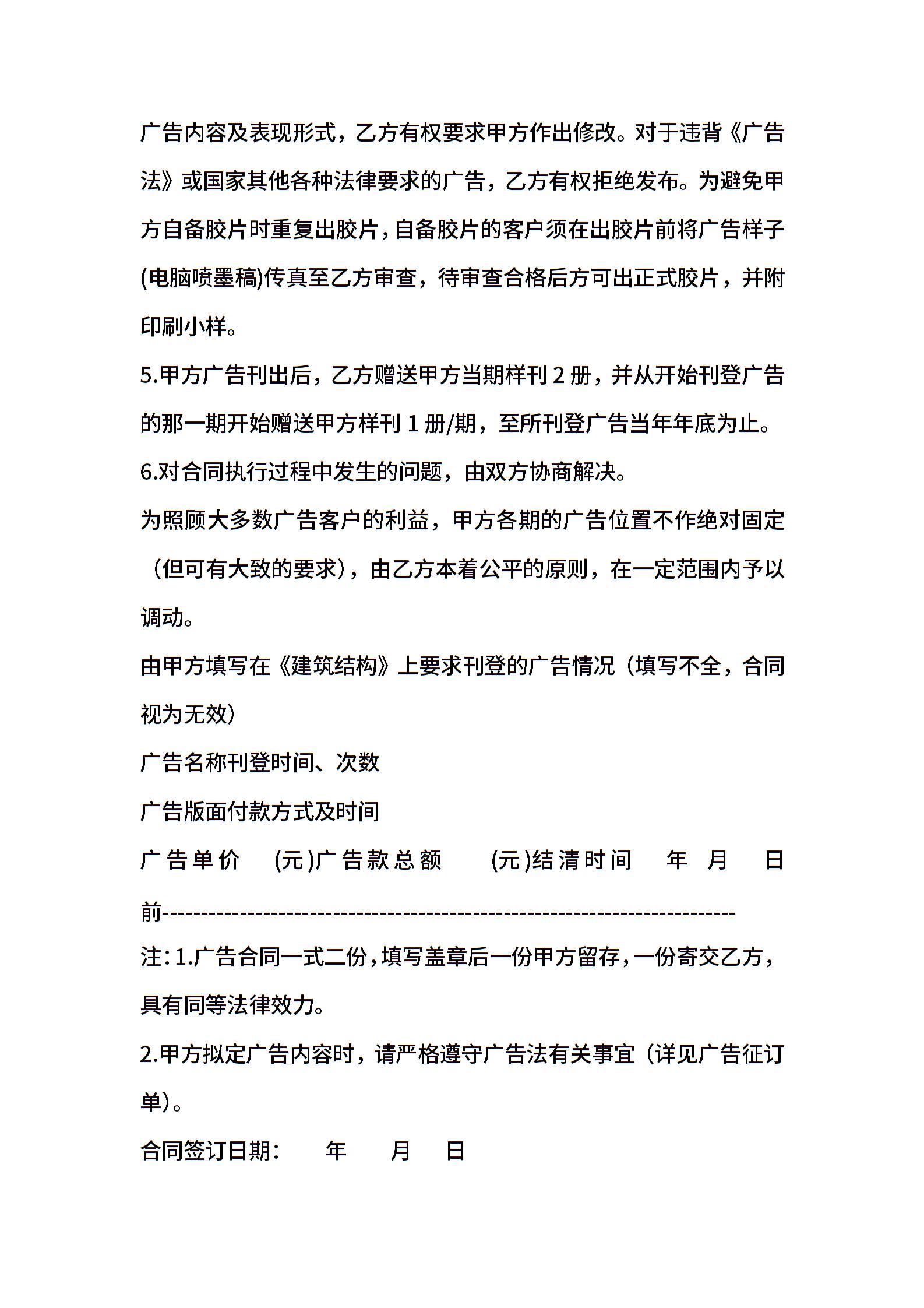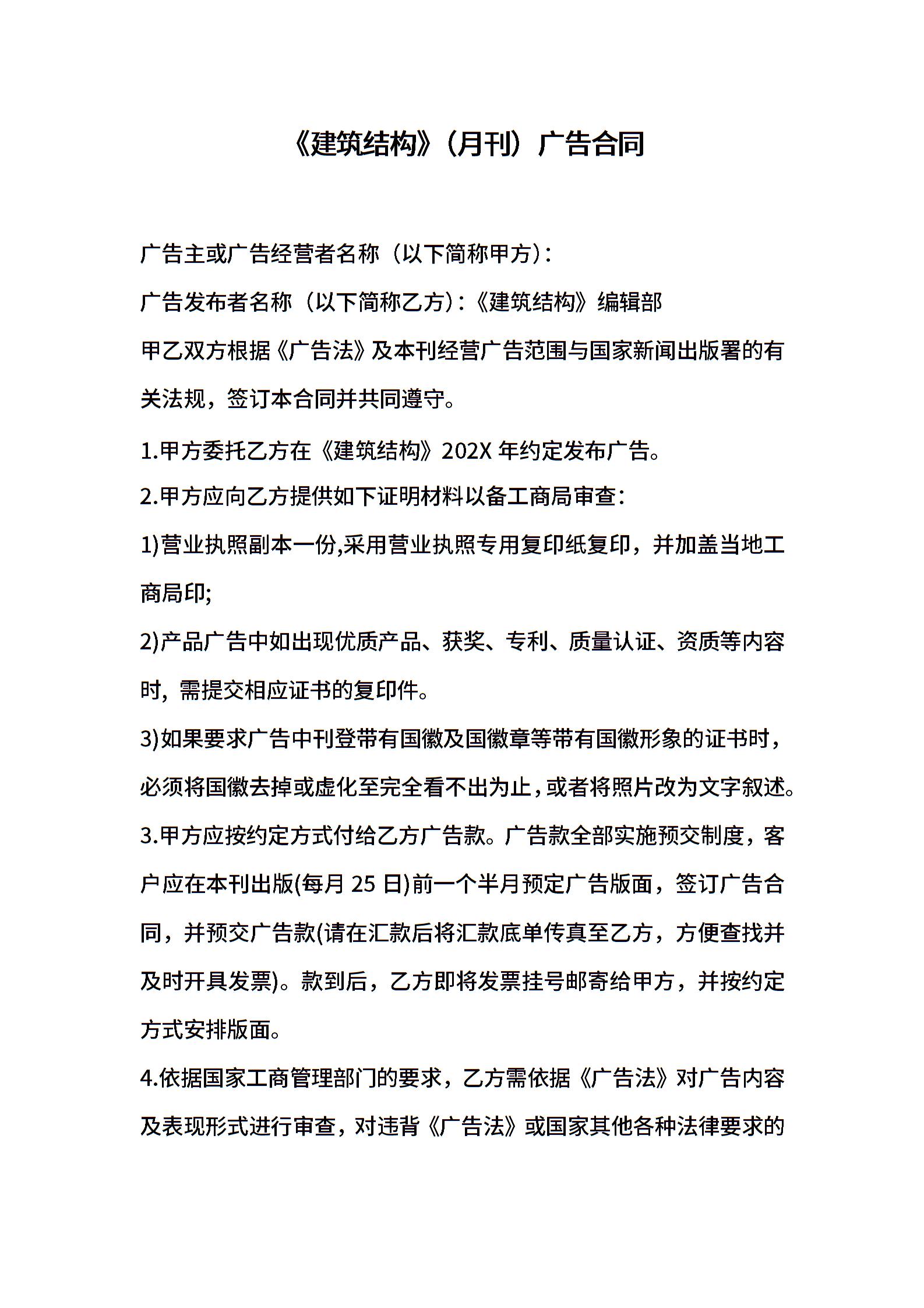 《建筑结构》(月刊)广告合同