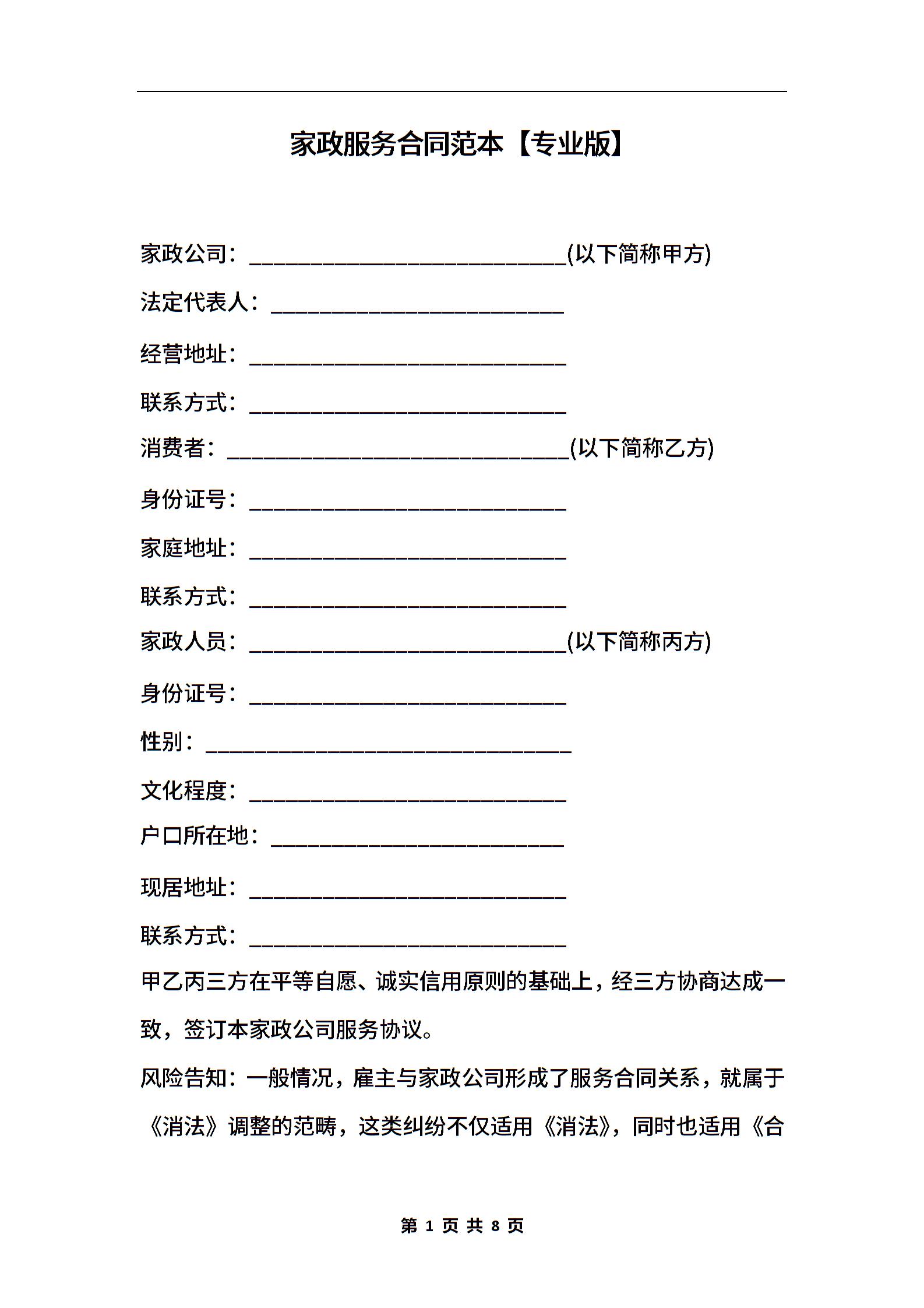家政服务合同范本【专业版】_1