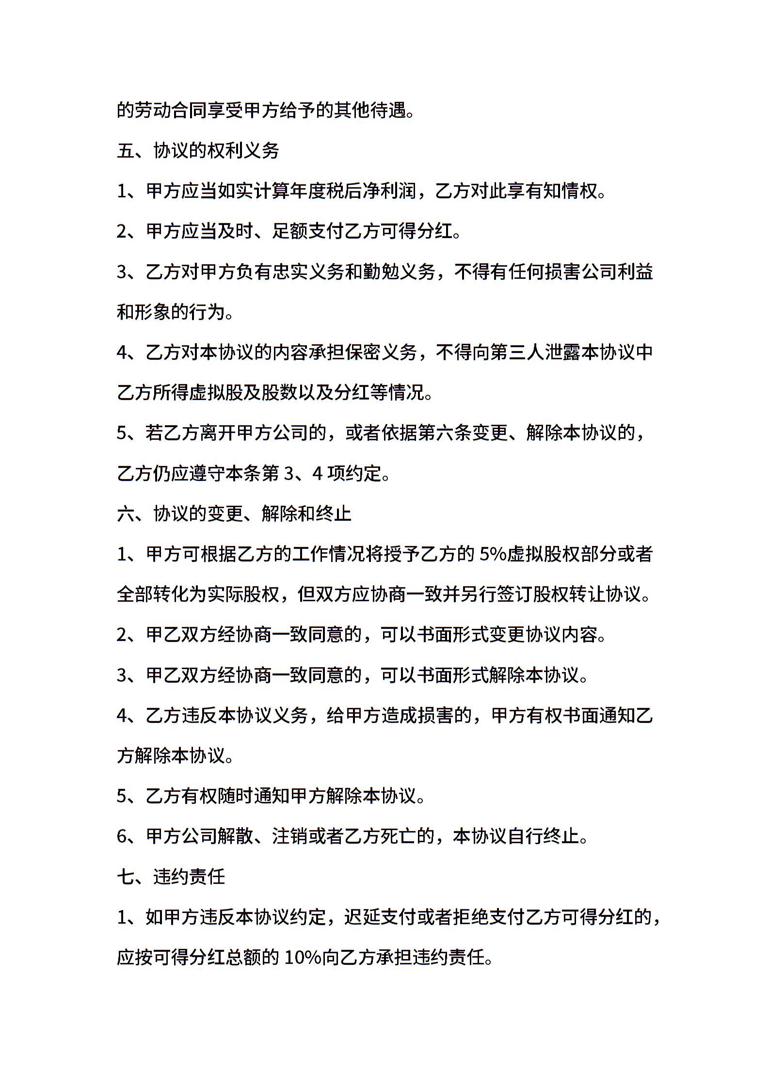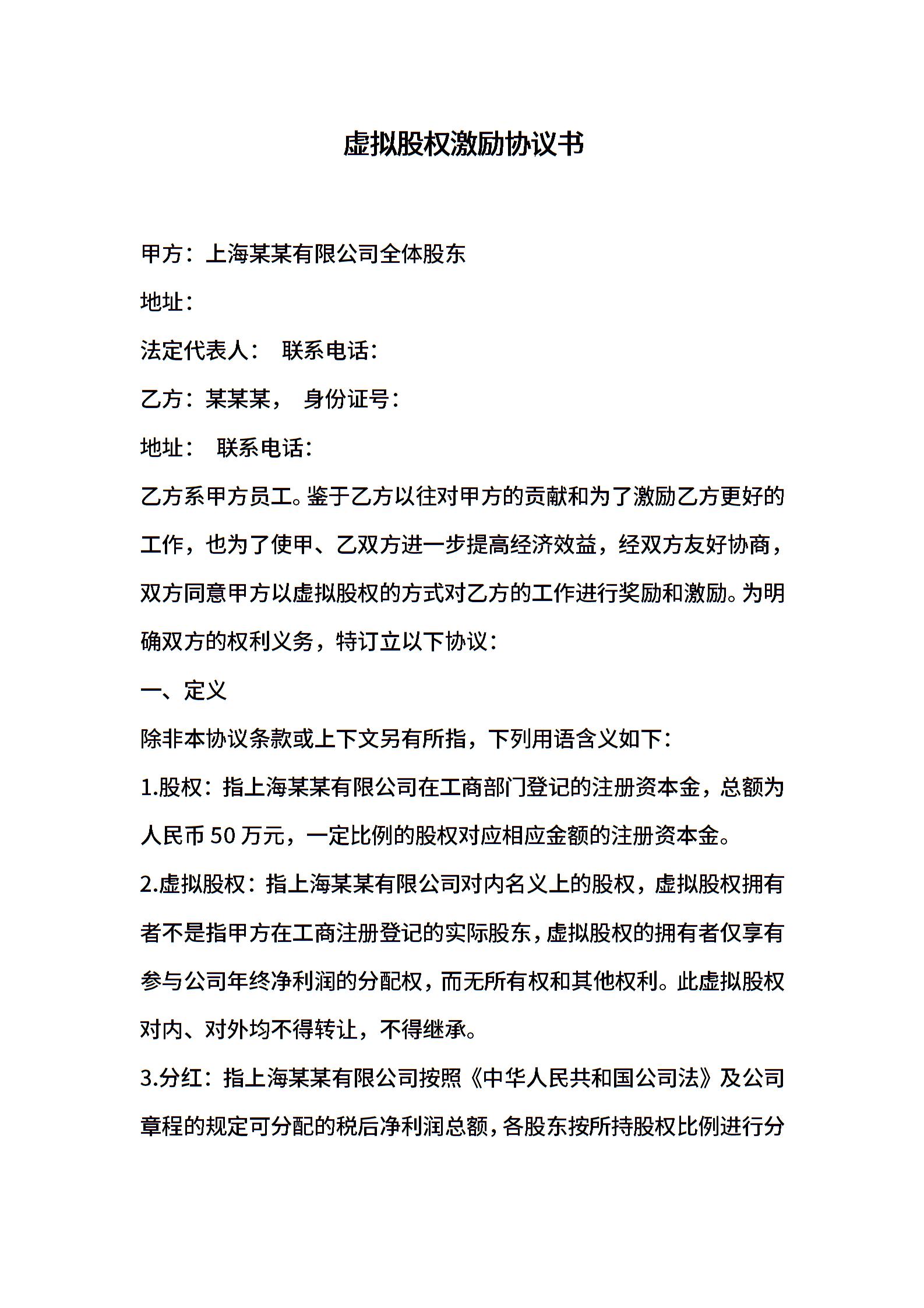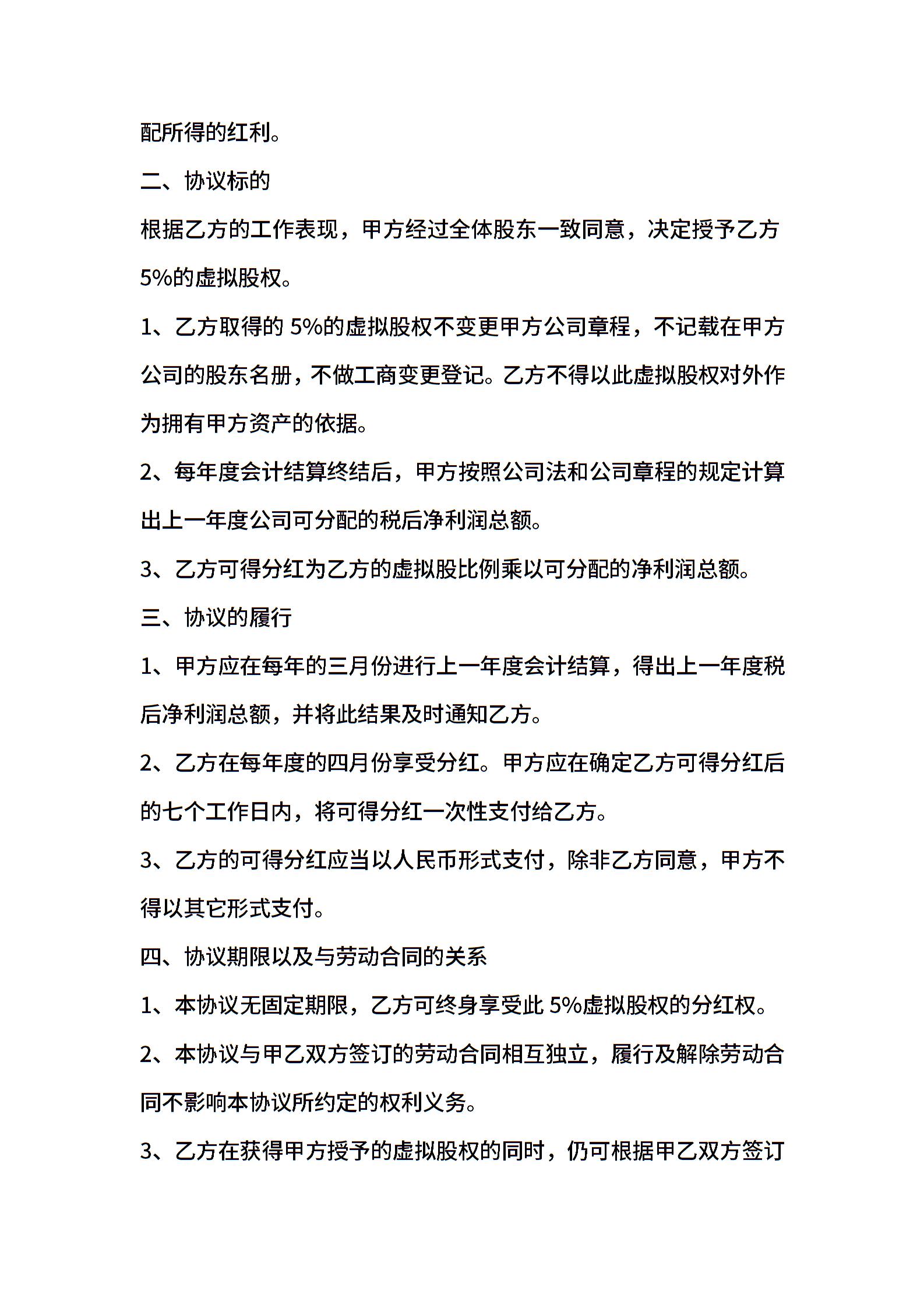 虚拟股权激励协议书
