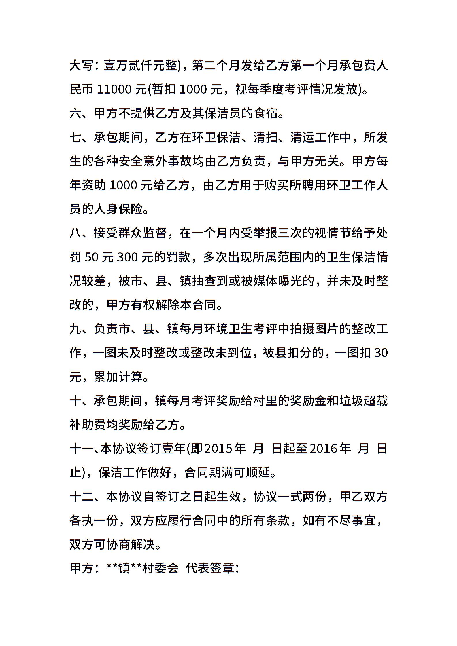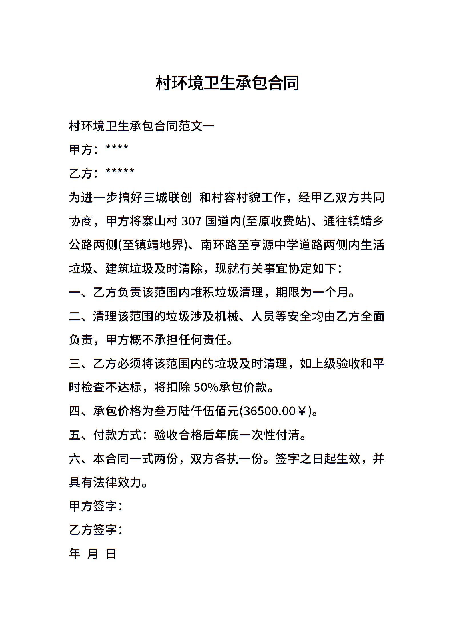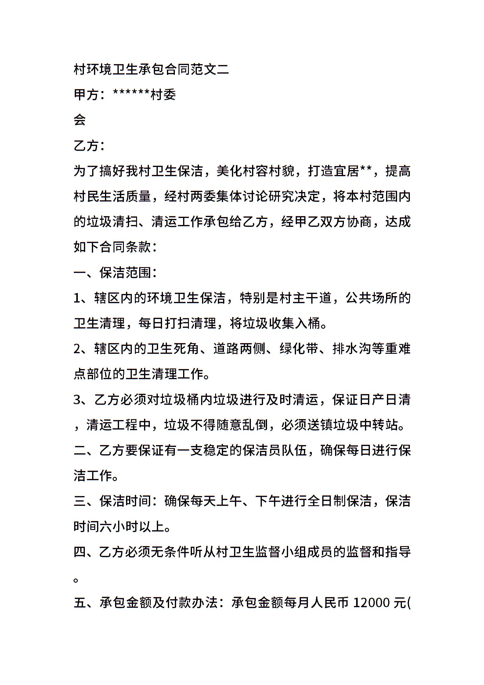 村环境卫生承包合同