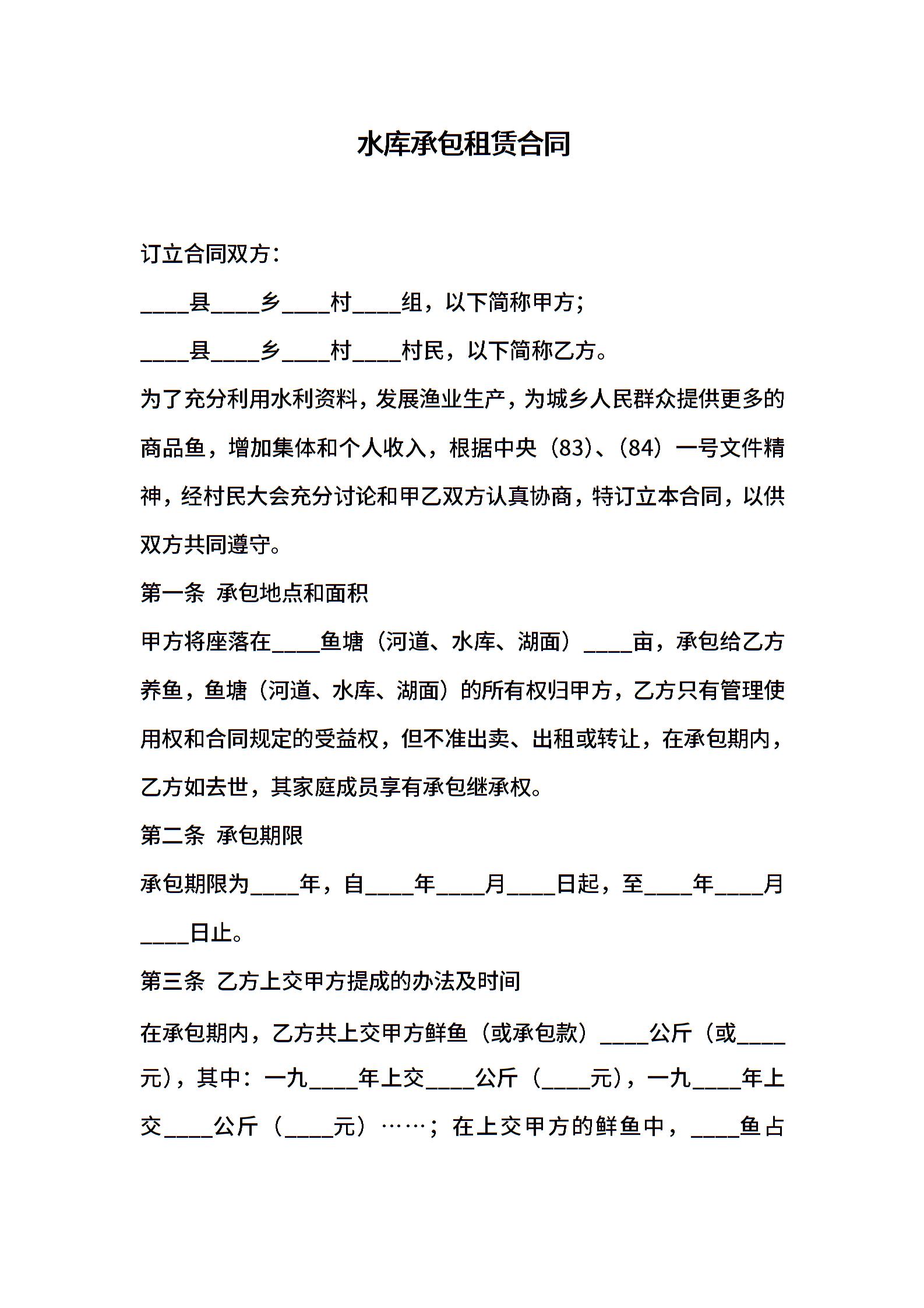 水库承包租赁合同