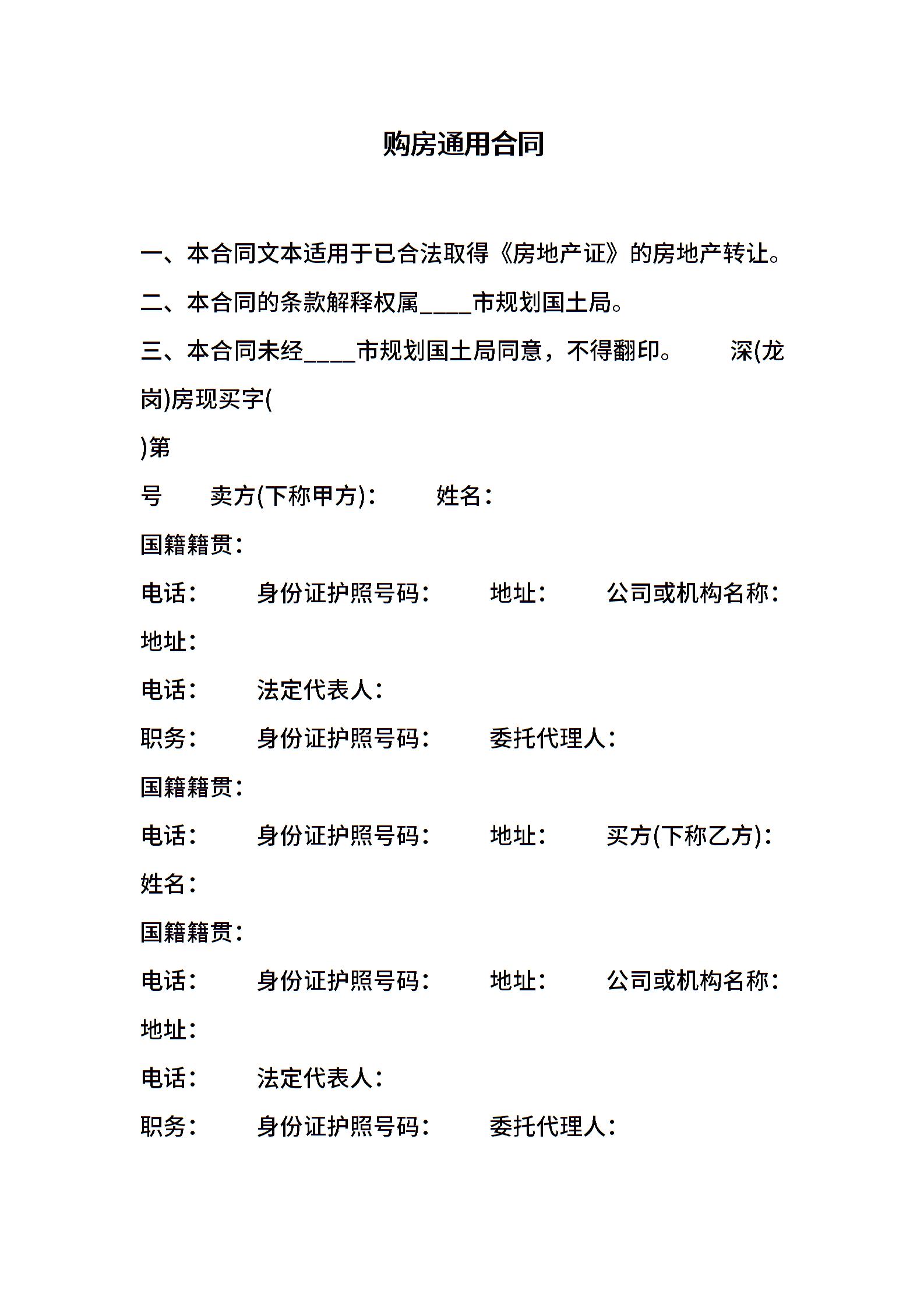 购房通用合同