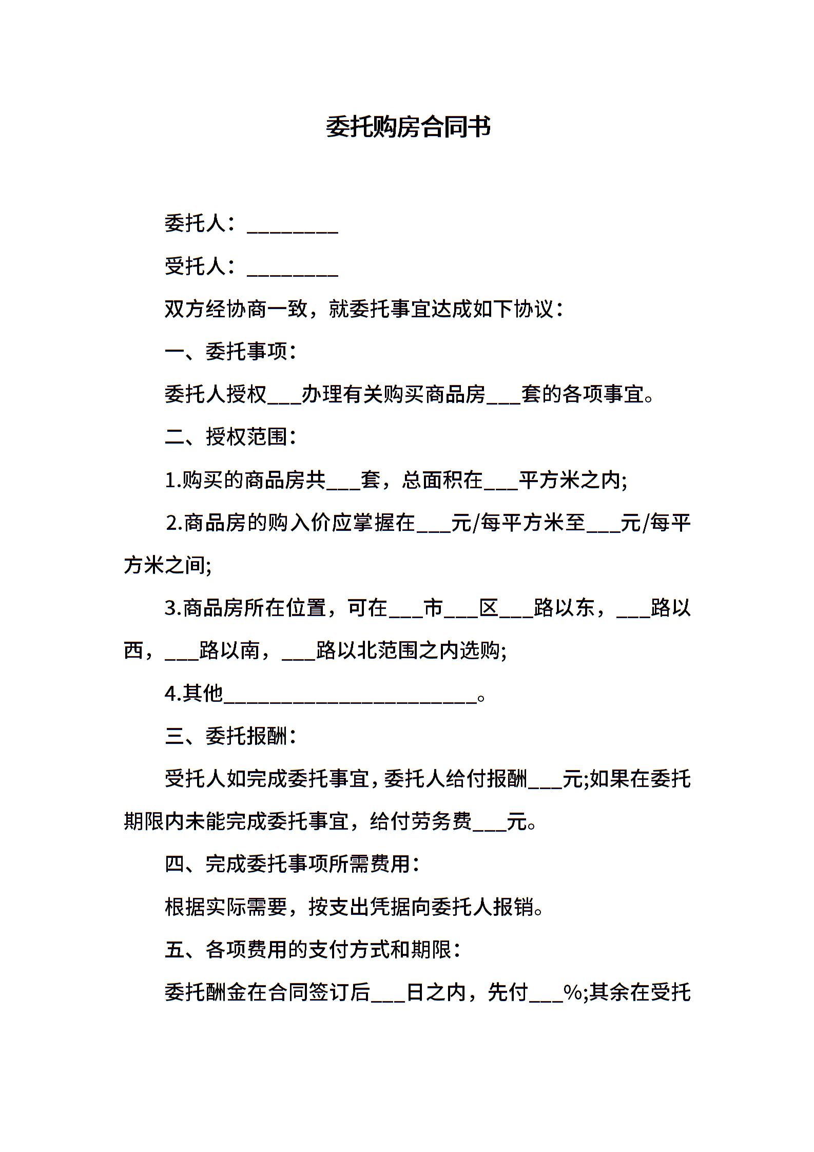 委托购房合同书
