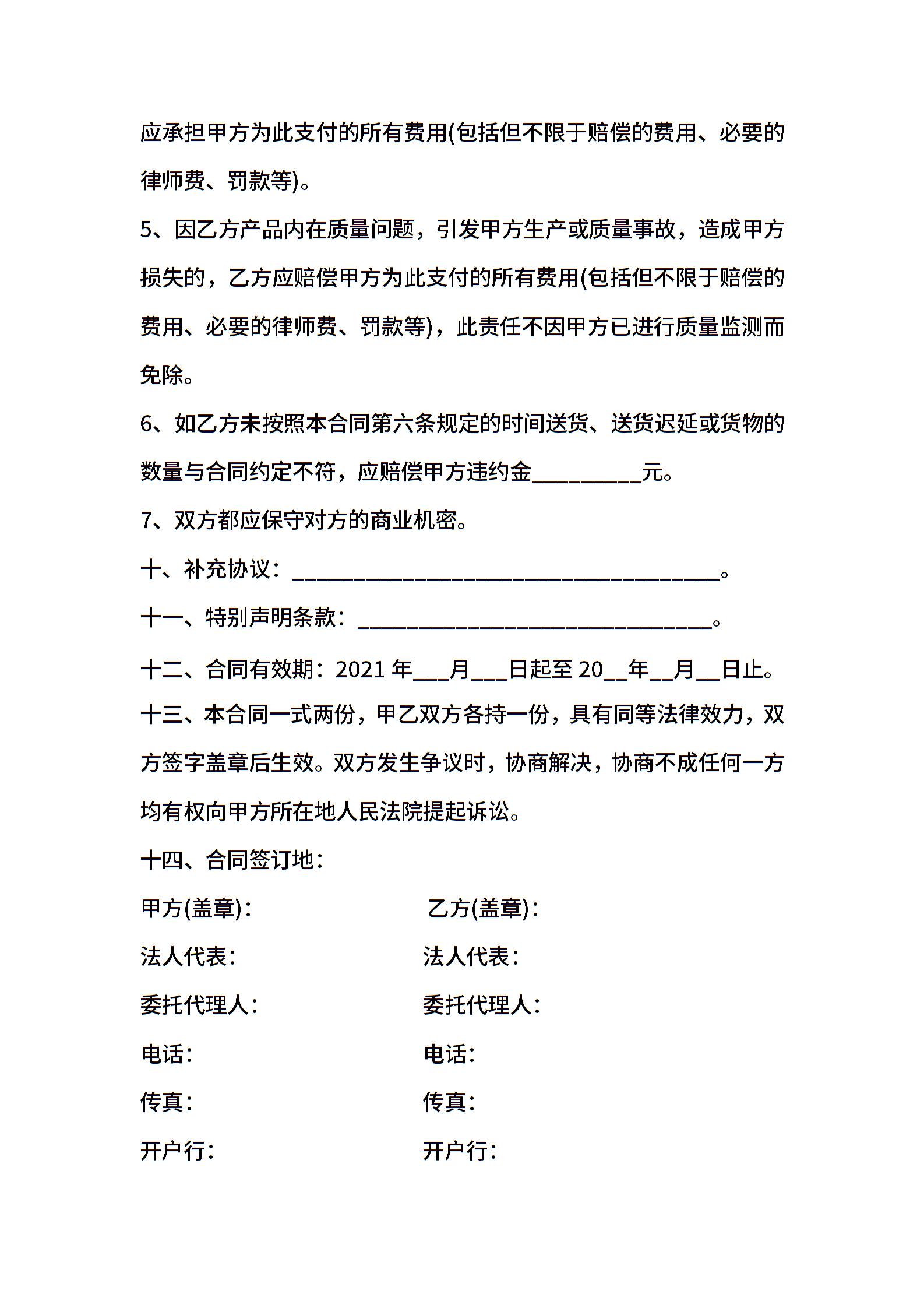 当前位置:量子办公 > 合同模板 > 购销合同 >