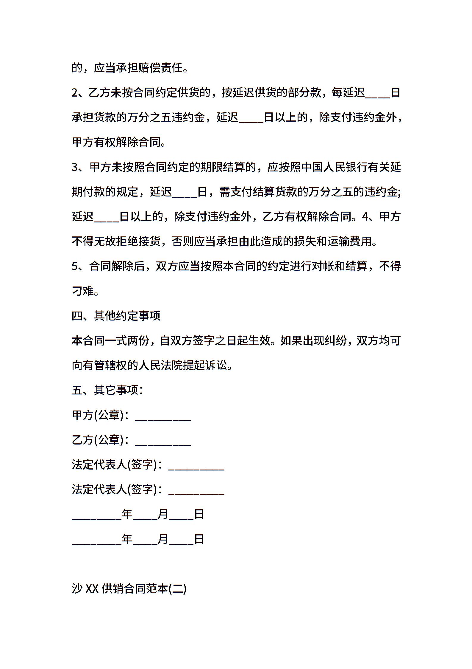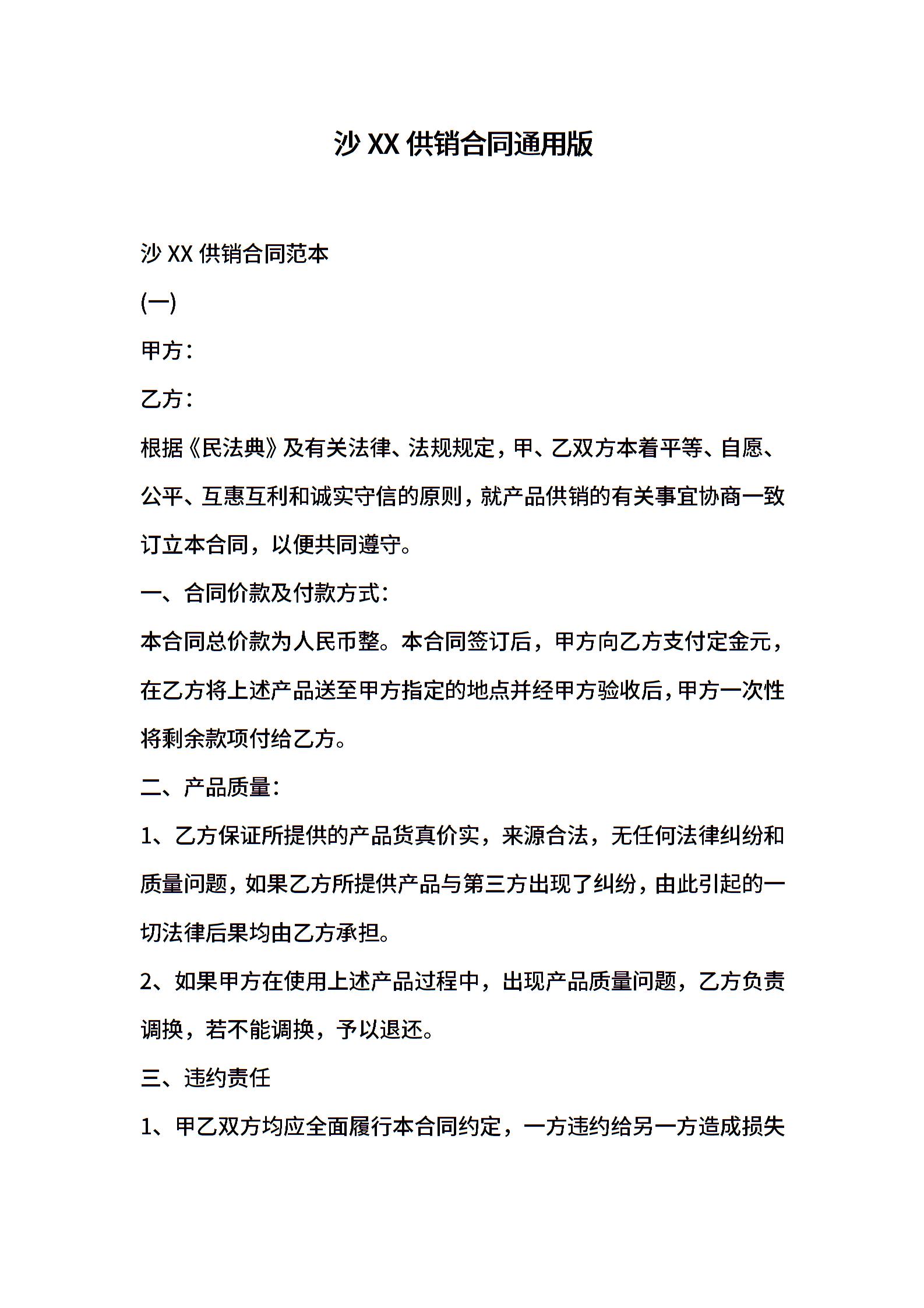 沙XX供销合同通用版