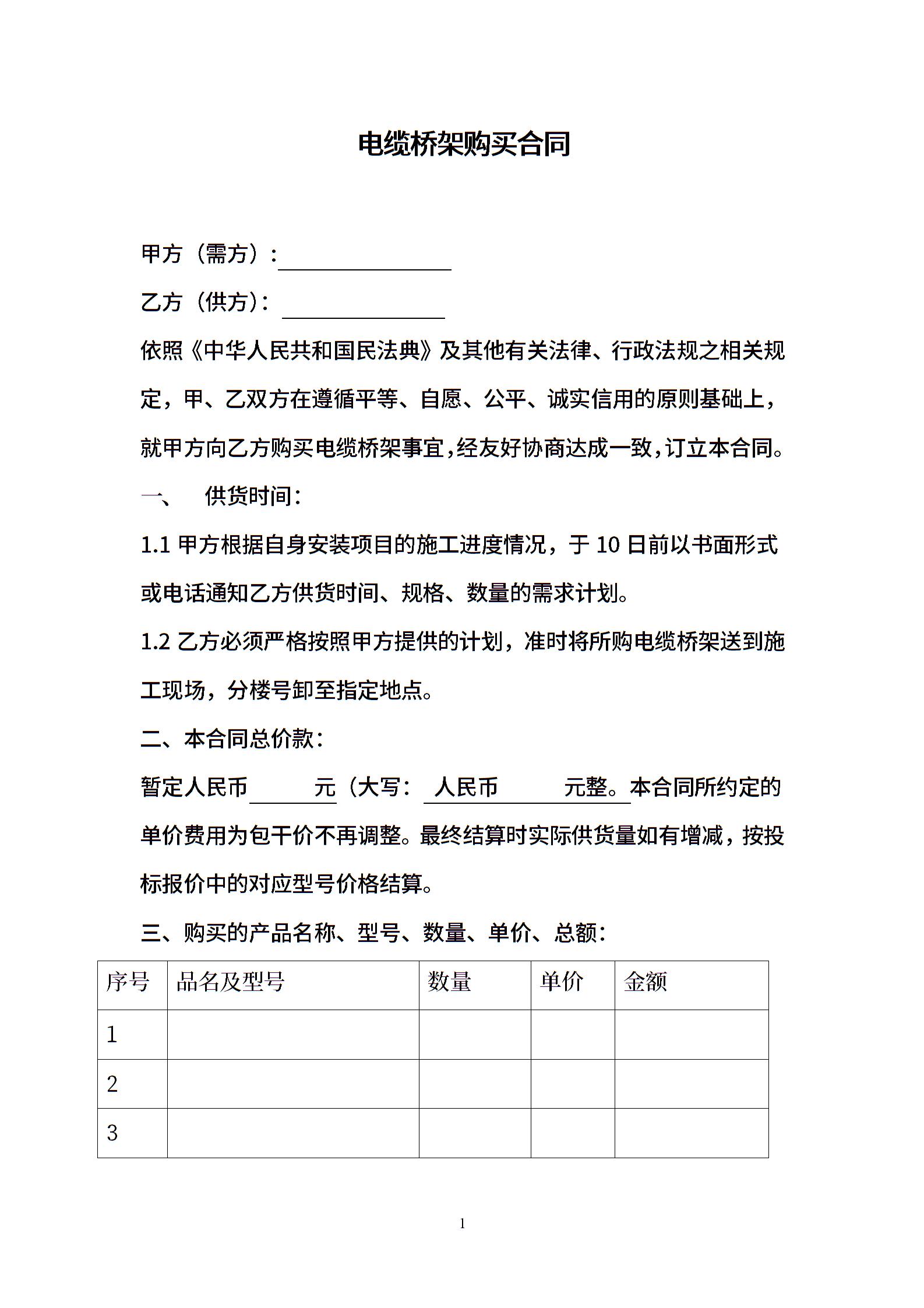 电缆桥架购买合同