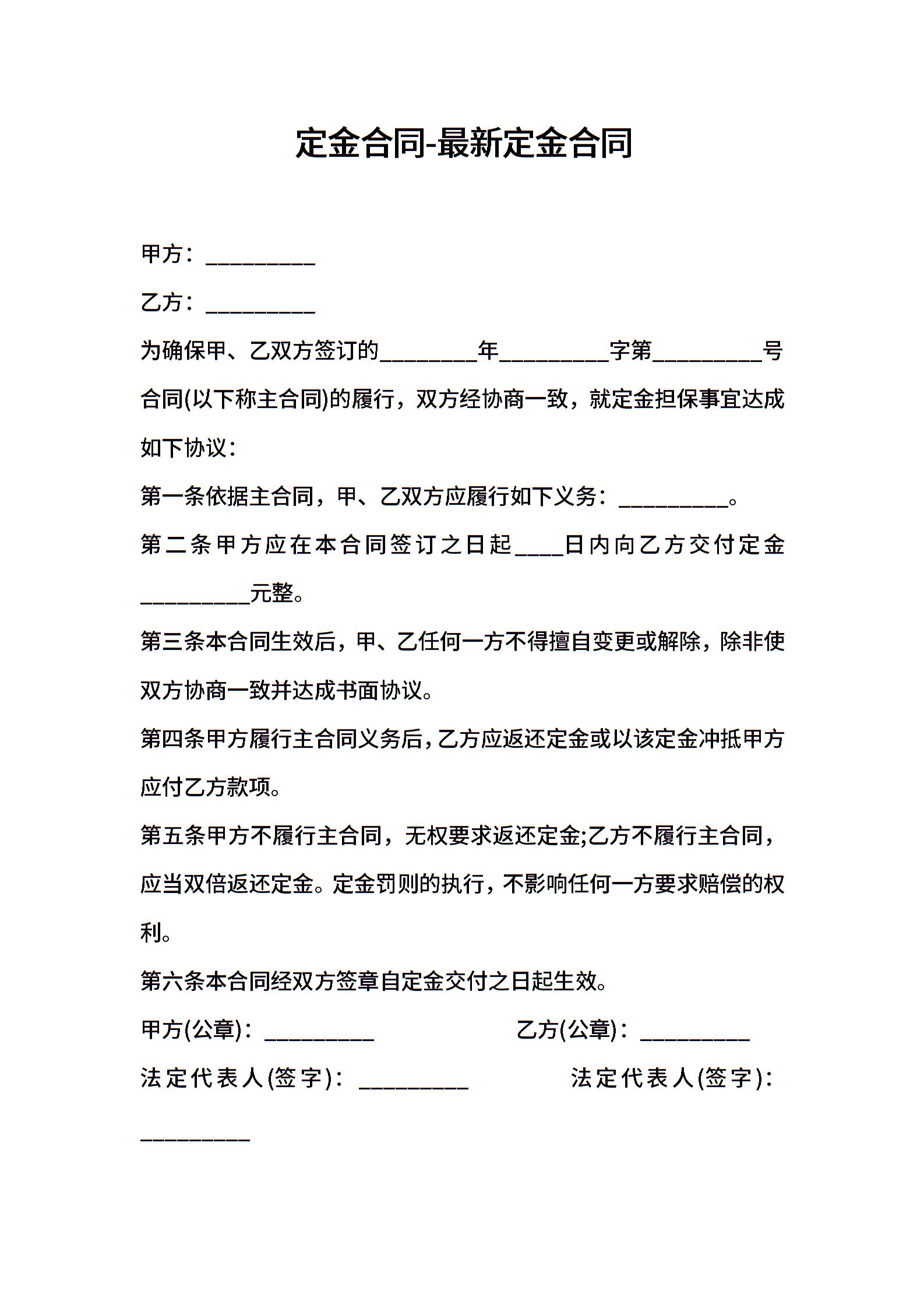 定金合同-最新定金合同