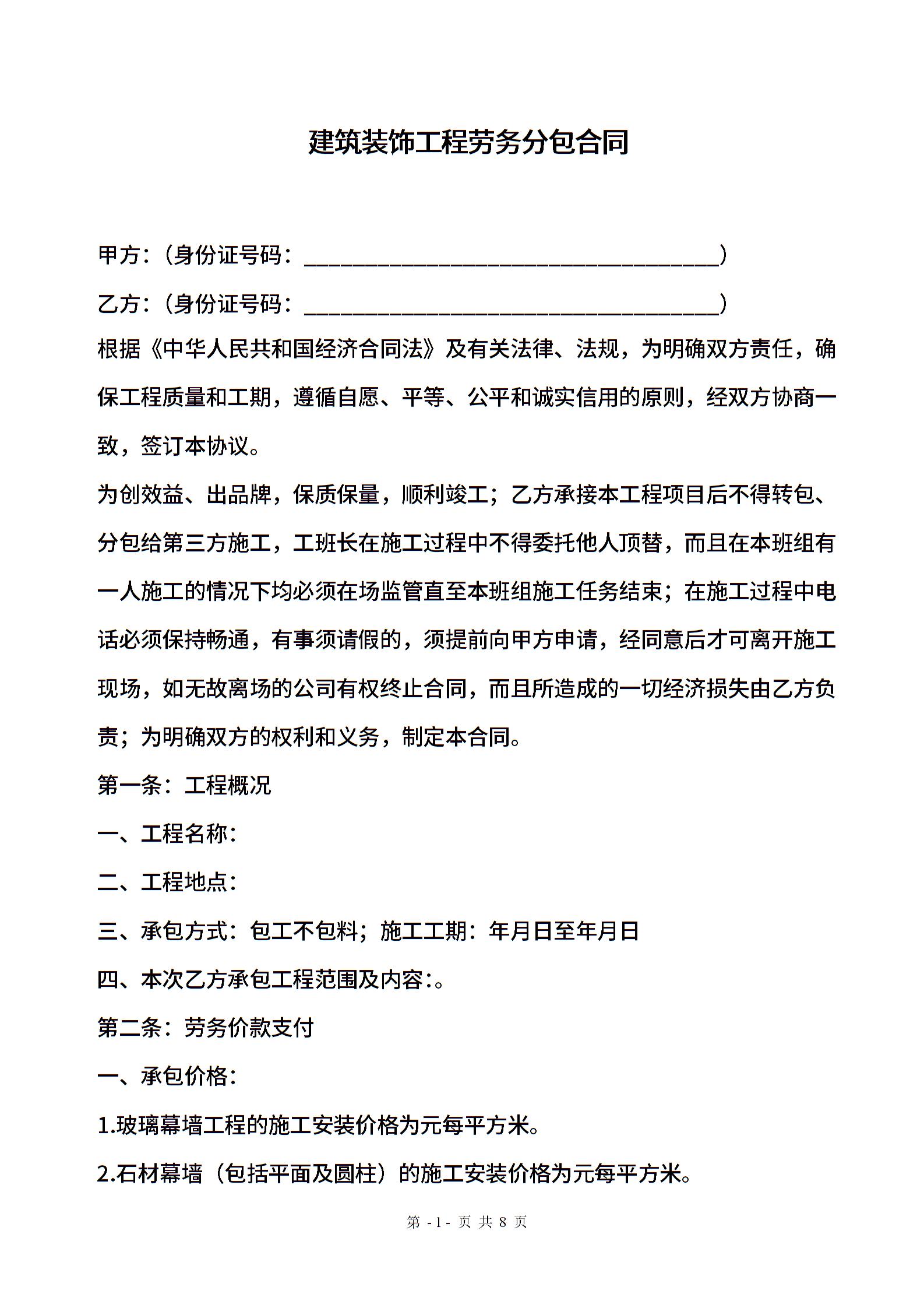 建筑装饰工程劳务分包合同