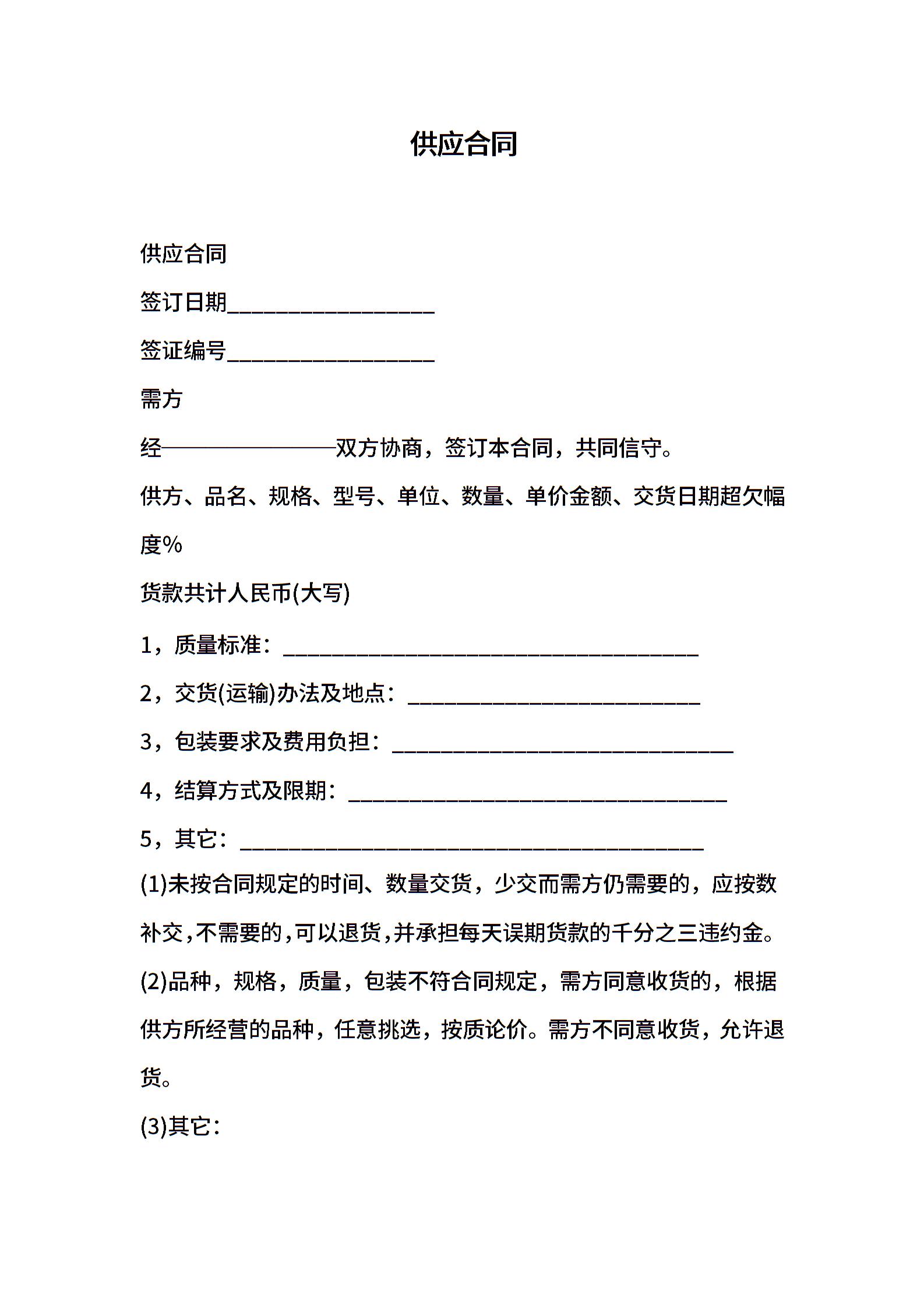 供应合同范本