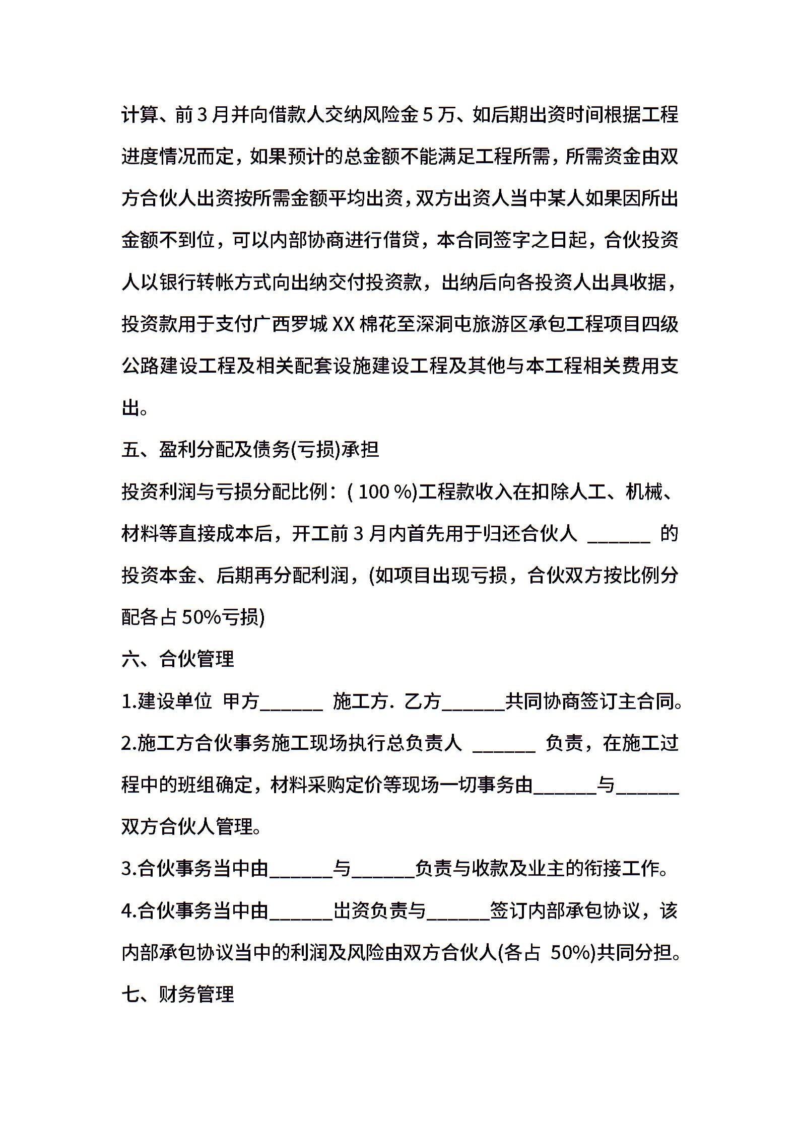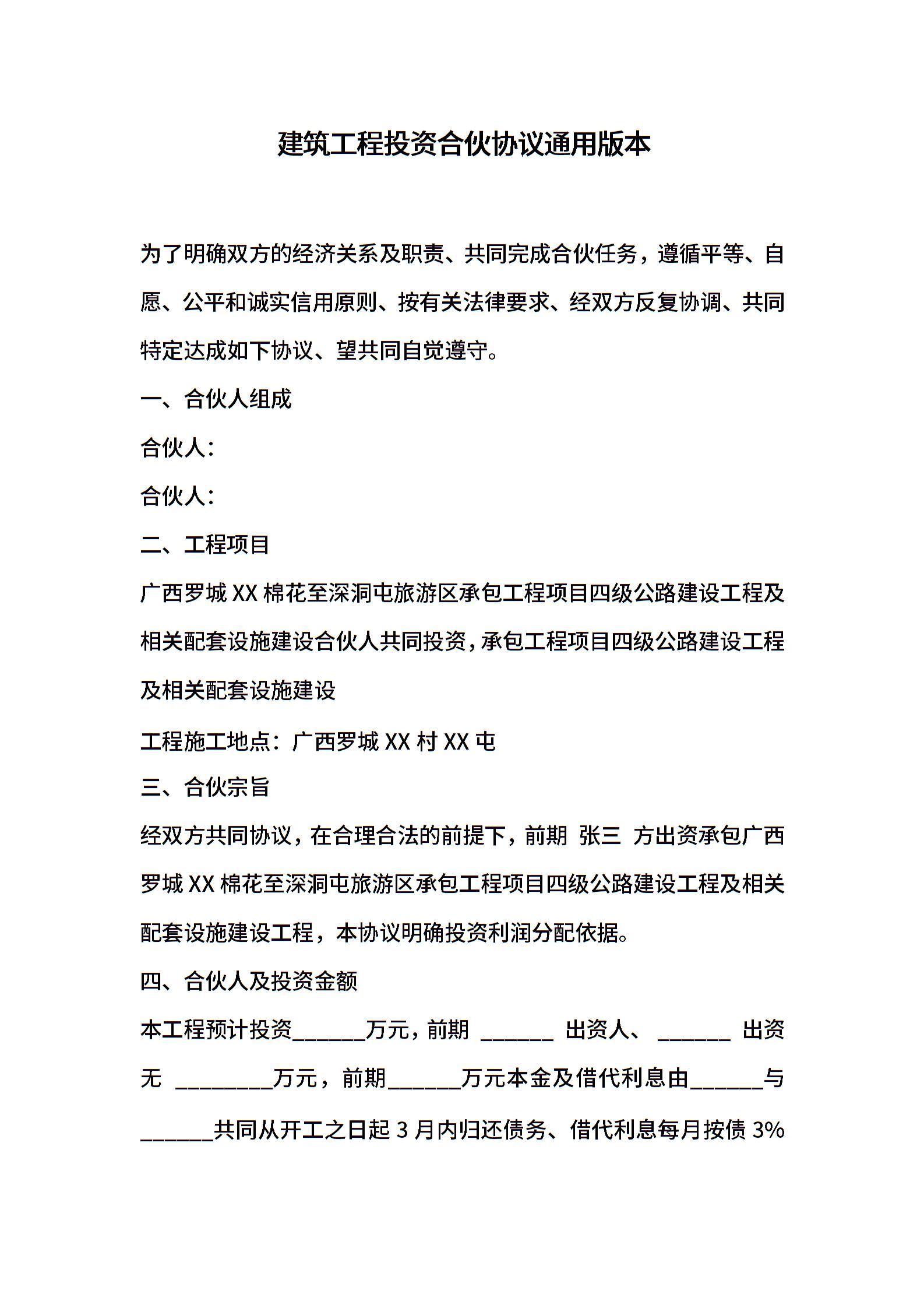 建筑工程投资合伙协议通用版本