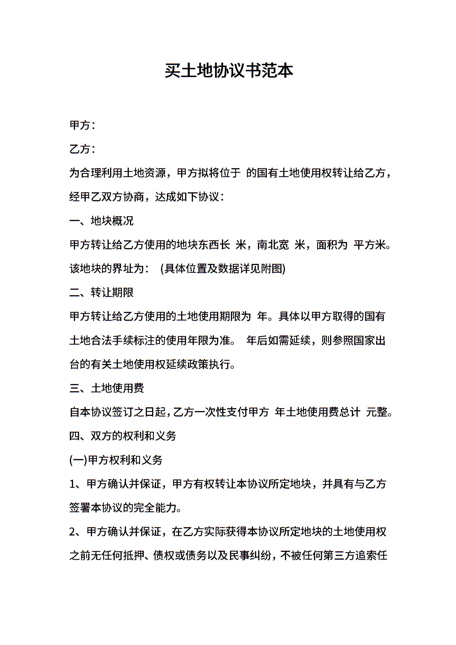 买土地协议书范本