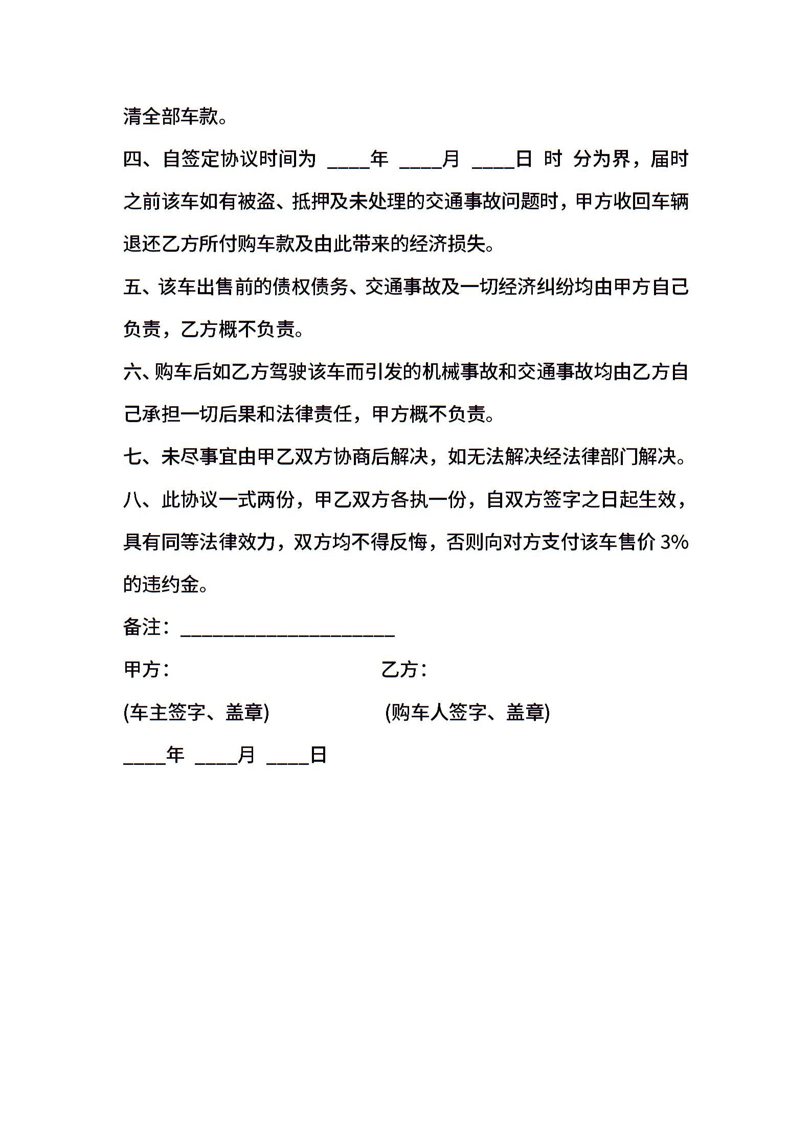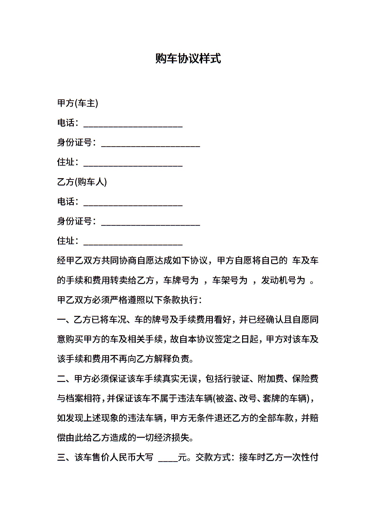 购车协议样式